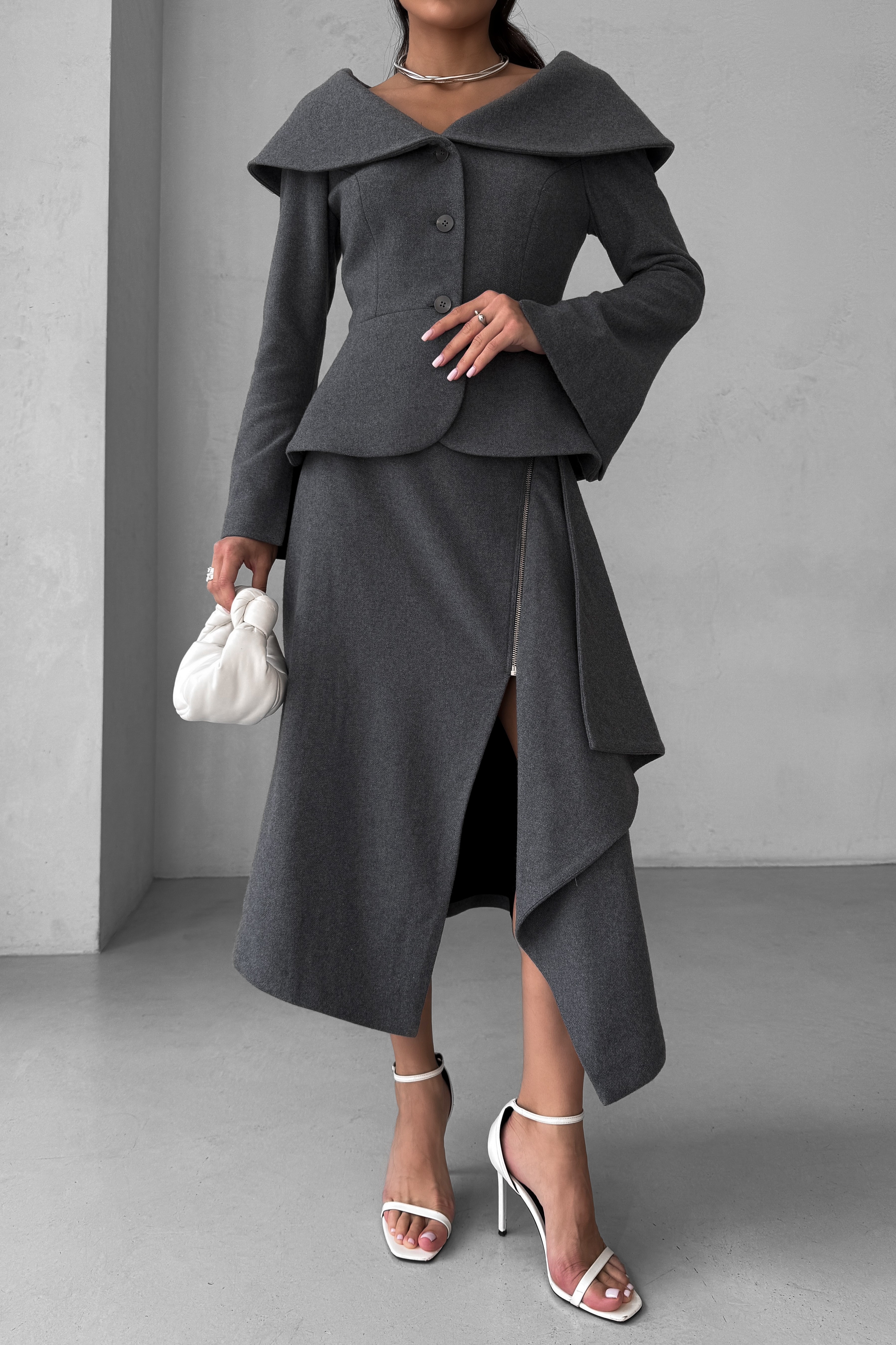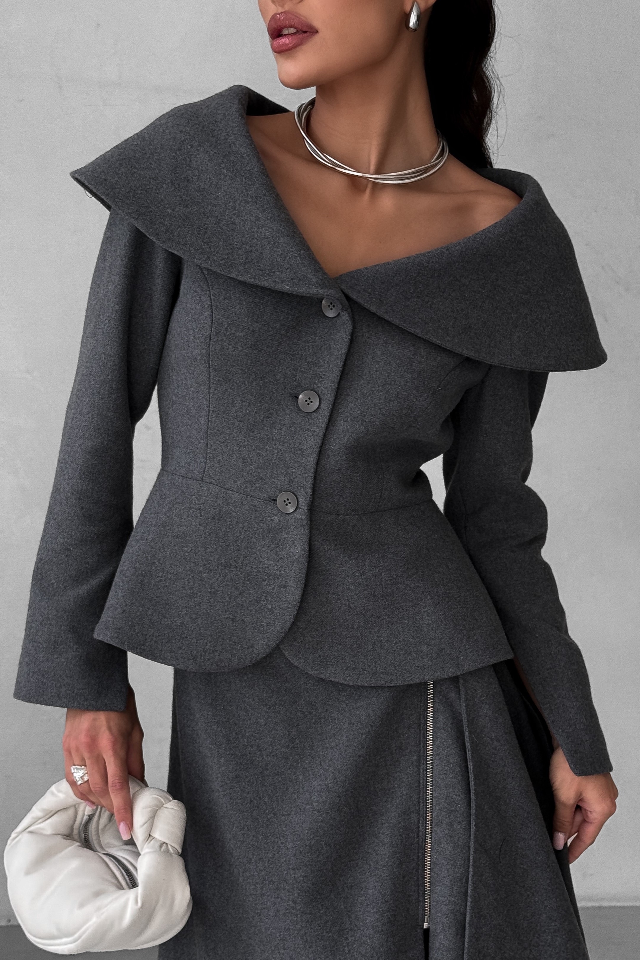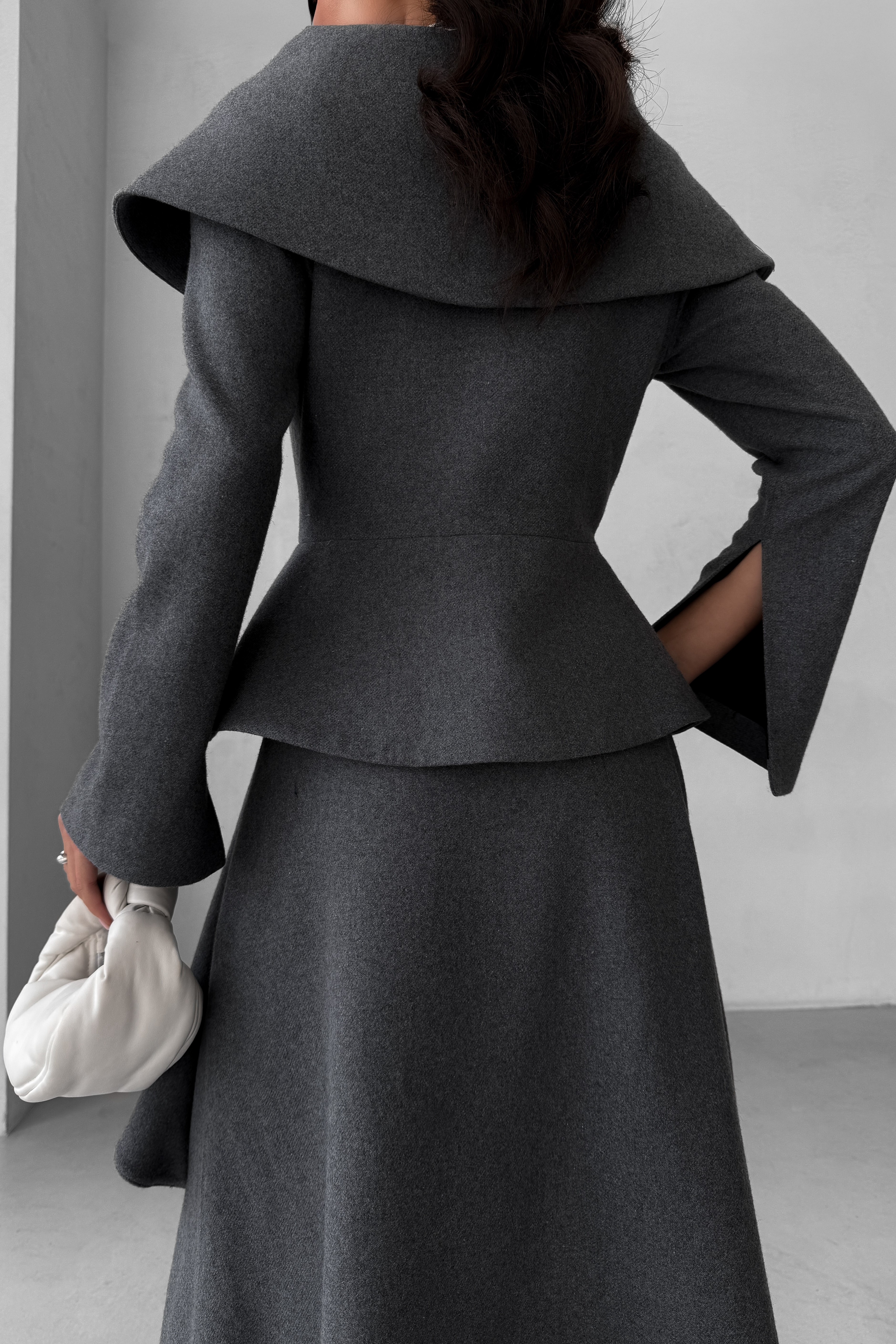 Jacket with a peplum and a wide collar made of Italian wool fabric