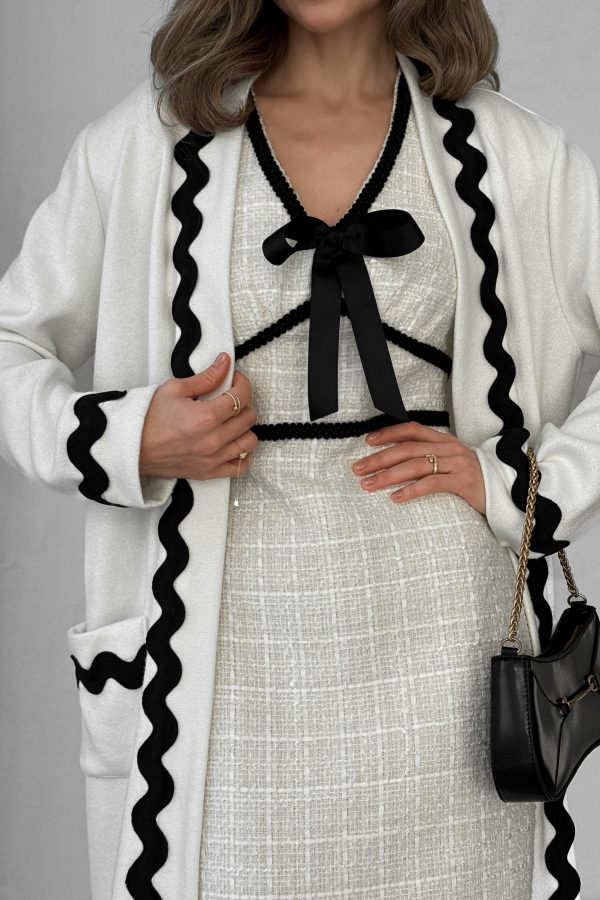 9 500 грн SKU: 1062Элегантное твидовое платье миди с короткими рукавами, контрастной тесьмой и бантом Платье прилегающего силуэта С острым вырезом горловины, с завышенной талией, с короткими рукавами, ниже колен С бантиком Состав ткани: 70% хлопок, 30% полиэстер Состав подкладки: 100% вискоза Цвет: айвори Длина платья: 108-110 см -