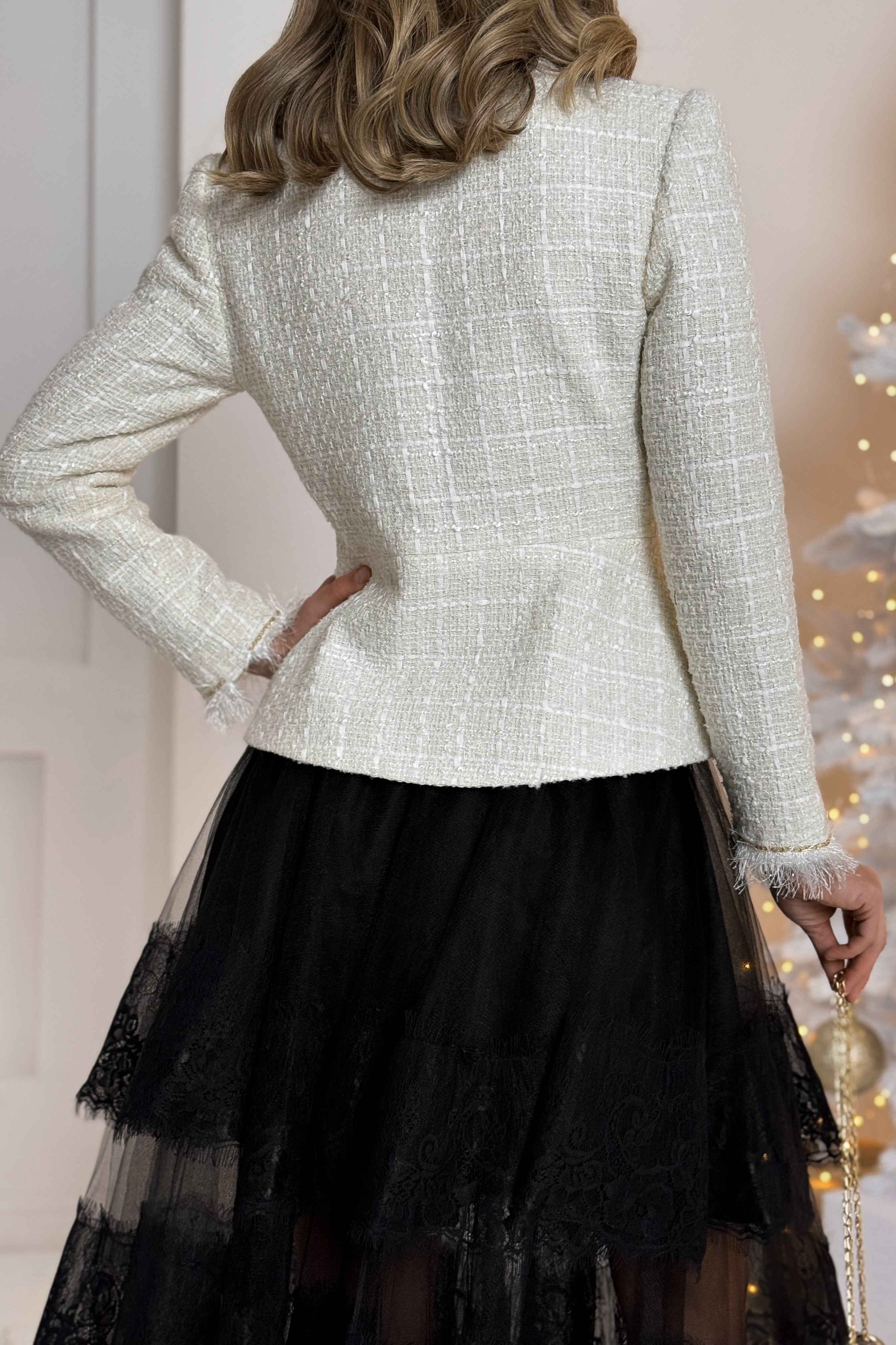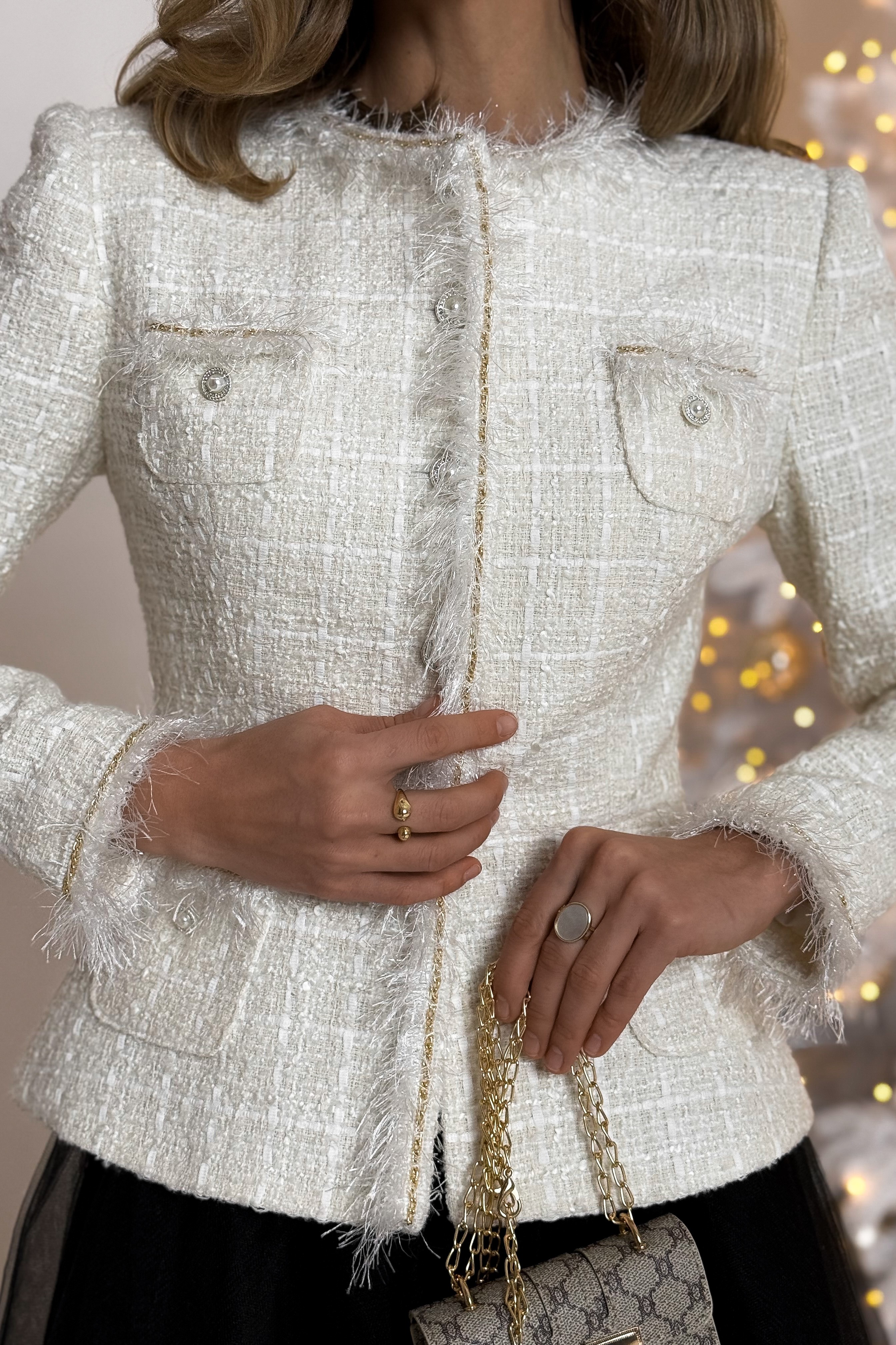 Твидовый пиджак с накладными карманами, с бахромой и цепочкой, Sarah Berlin