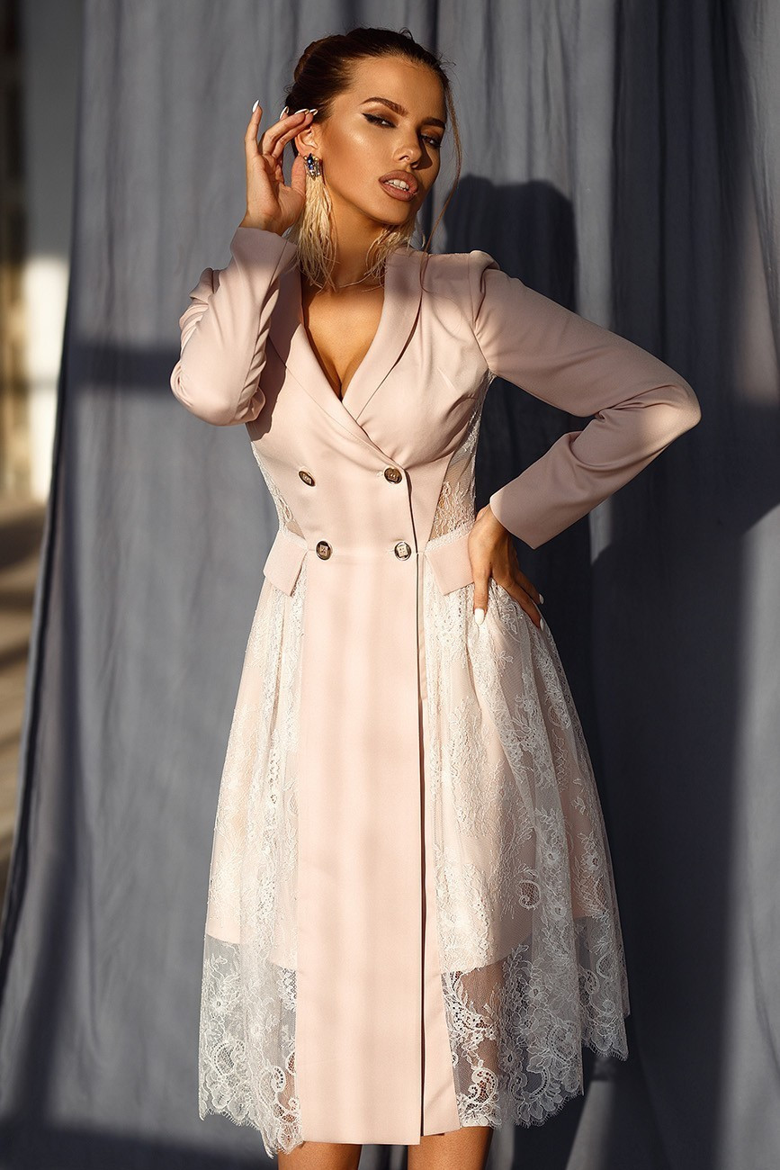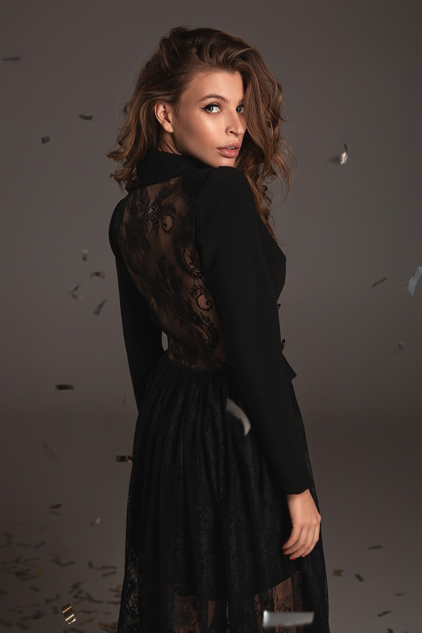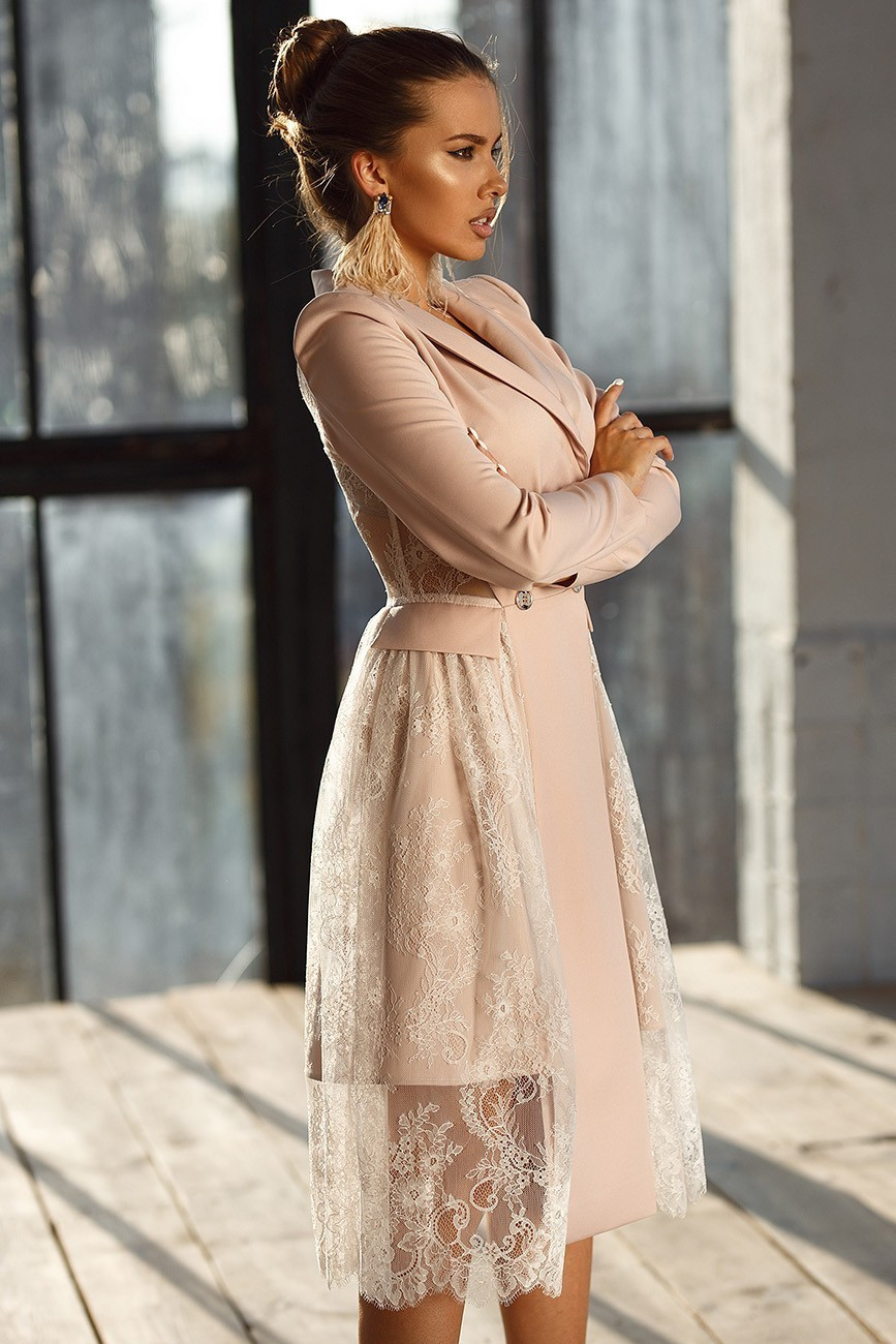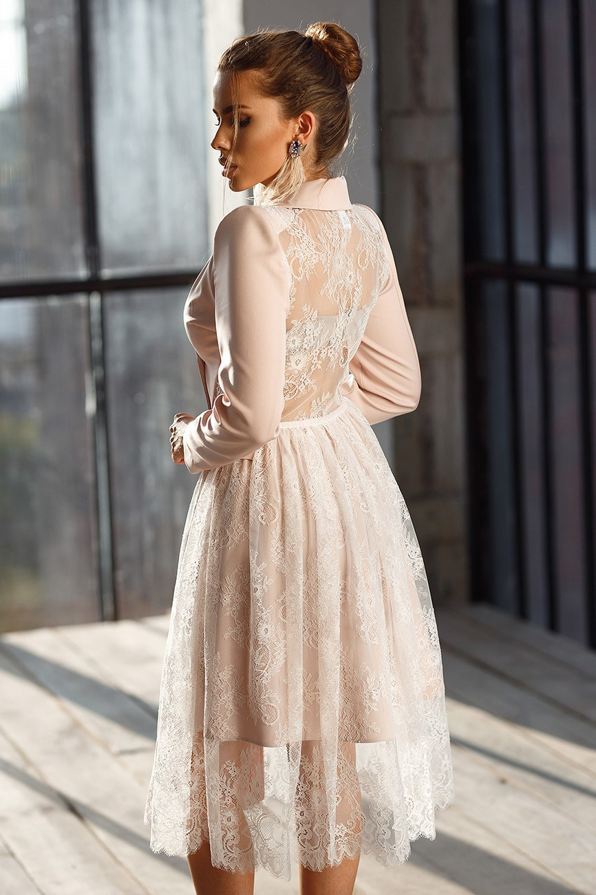 Элегантное платье кардиган с кружевной юбкой и спинкой.