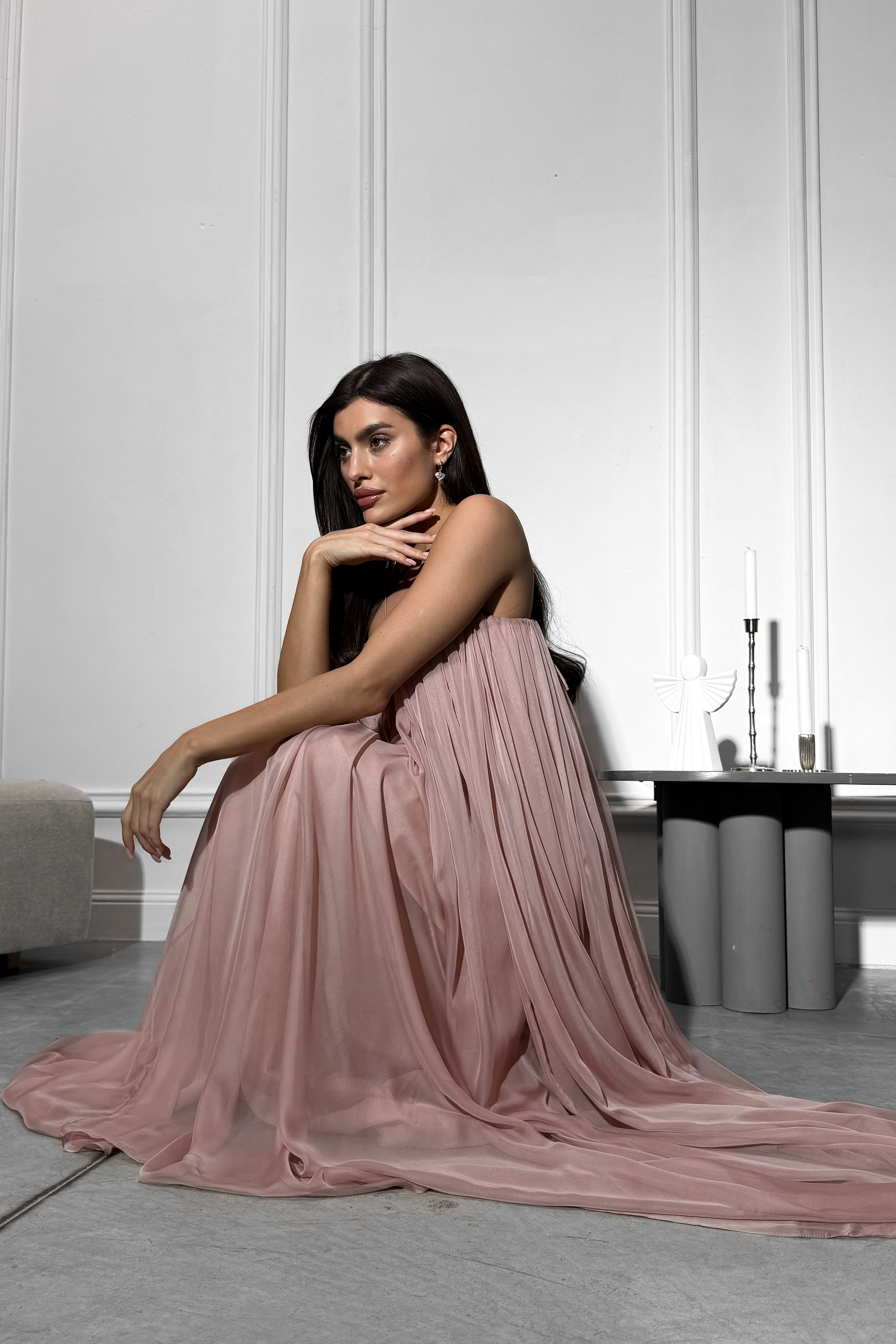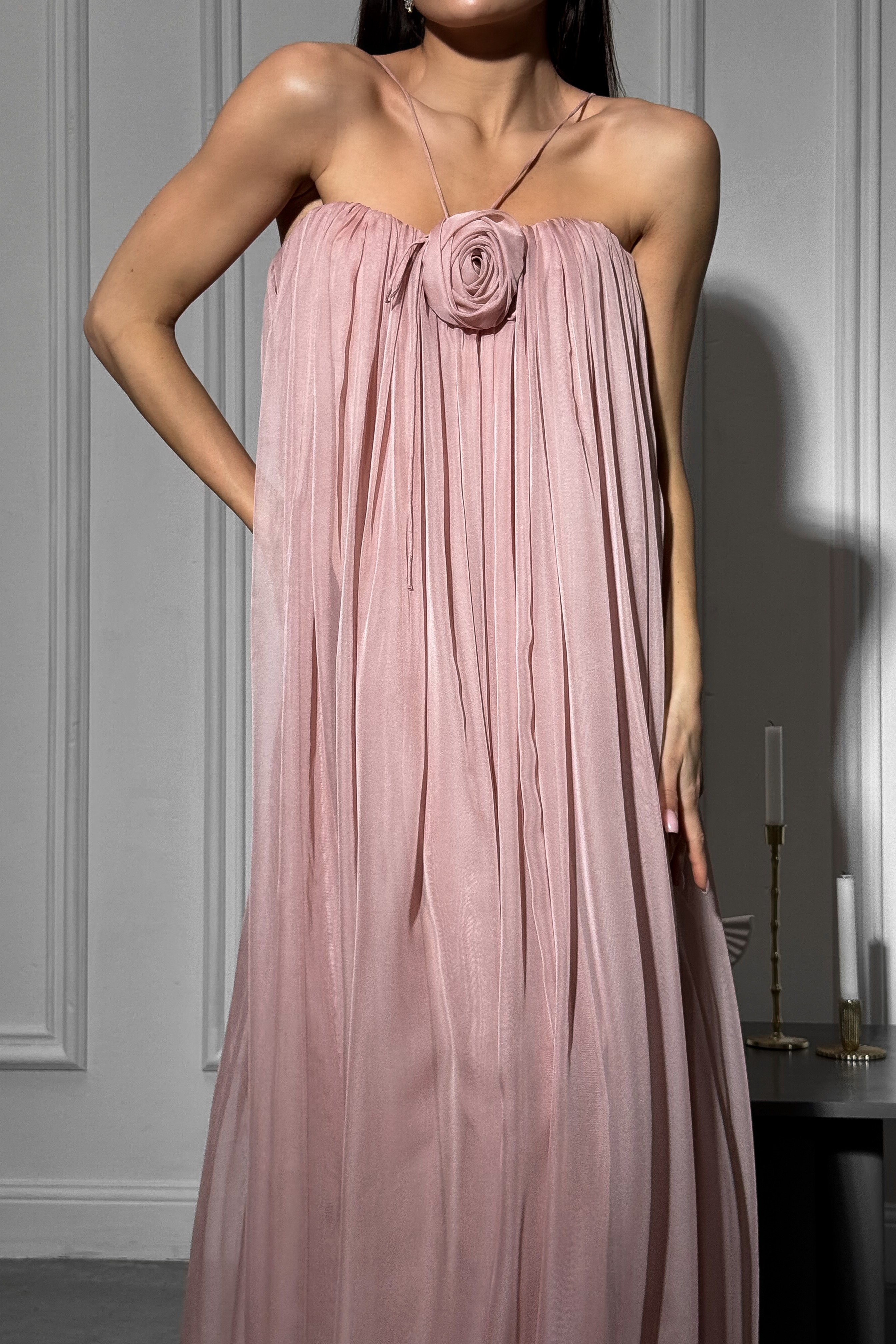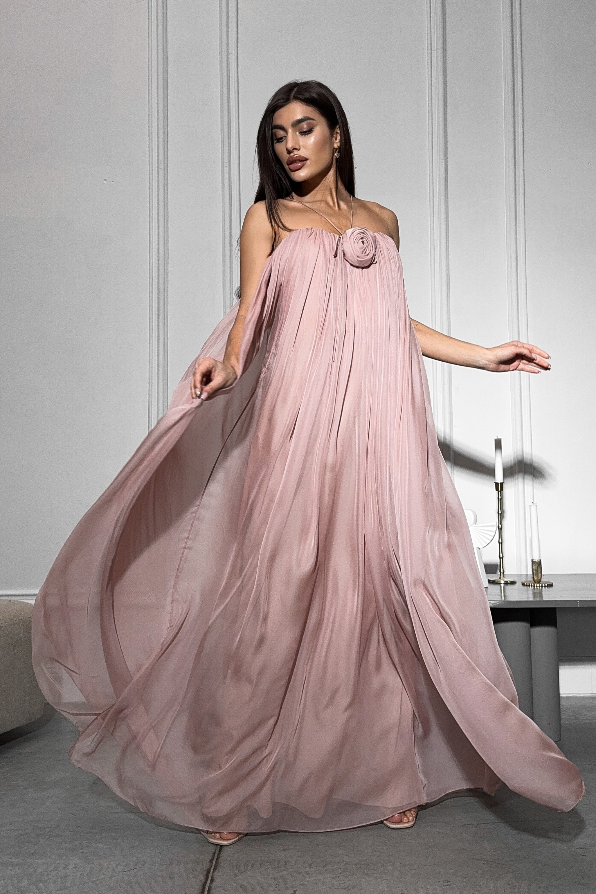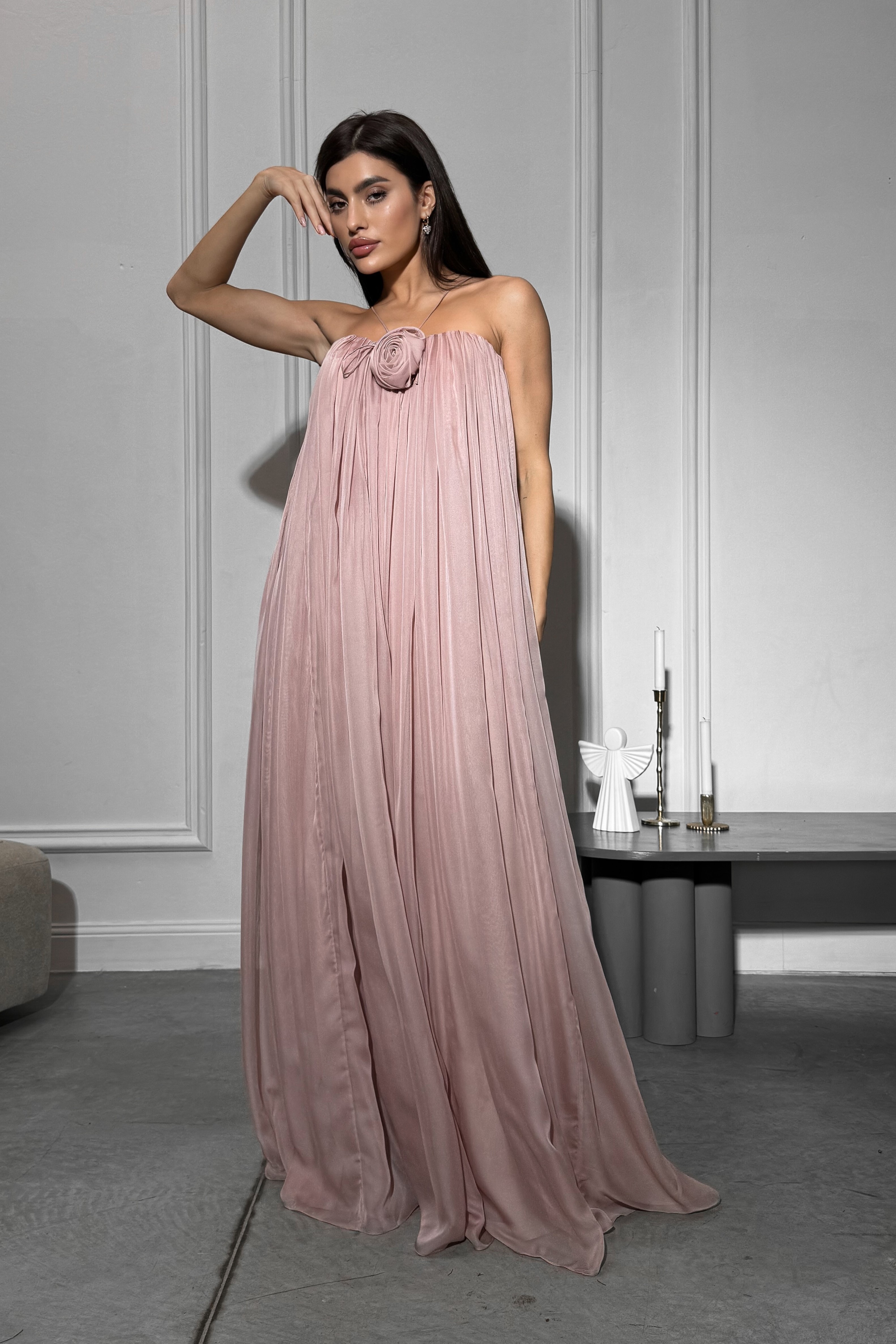 Платье бюстье в пол из шифона с внутренним корсетом, с розой, Sarah Berlin