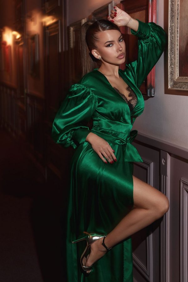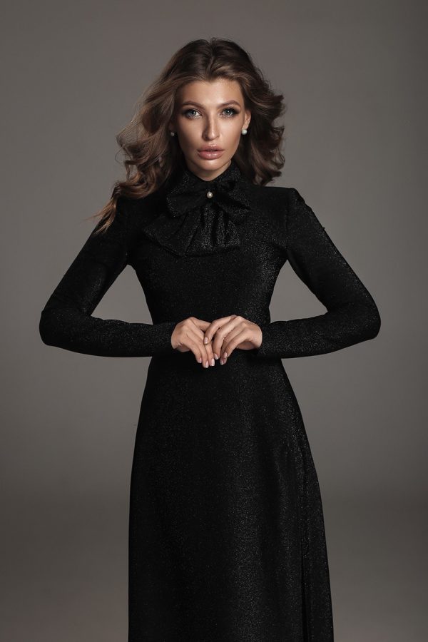 Форма: асимметричное, на одно плечо, длина в пол, пояс из перьев.
