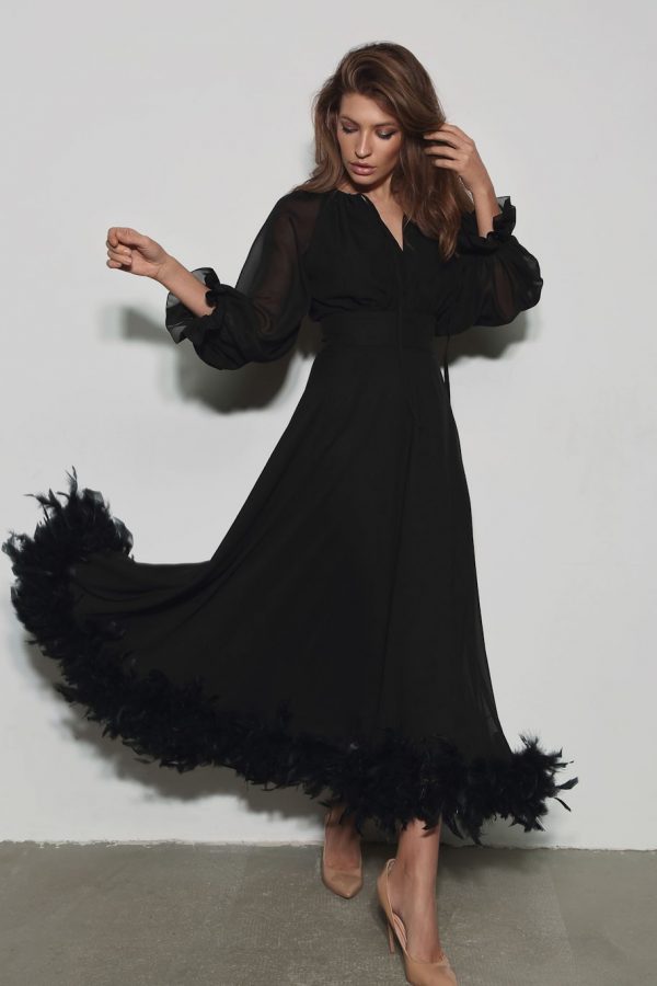 Прекрасно сочетается с обувью на высоких каблуках и изысканными аксессуарами.
