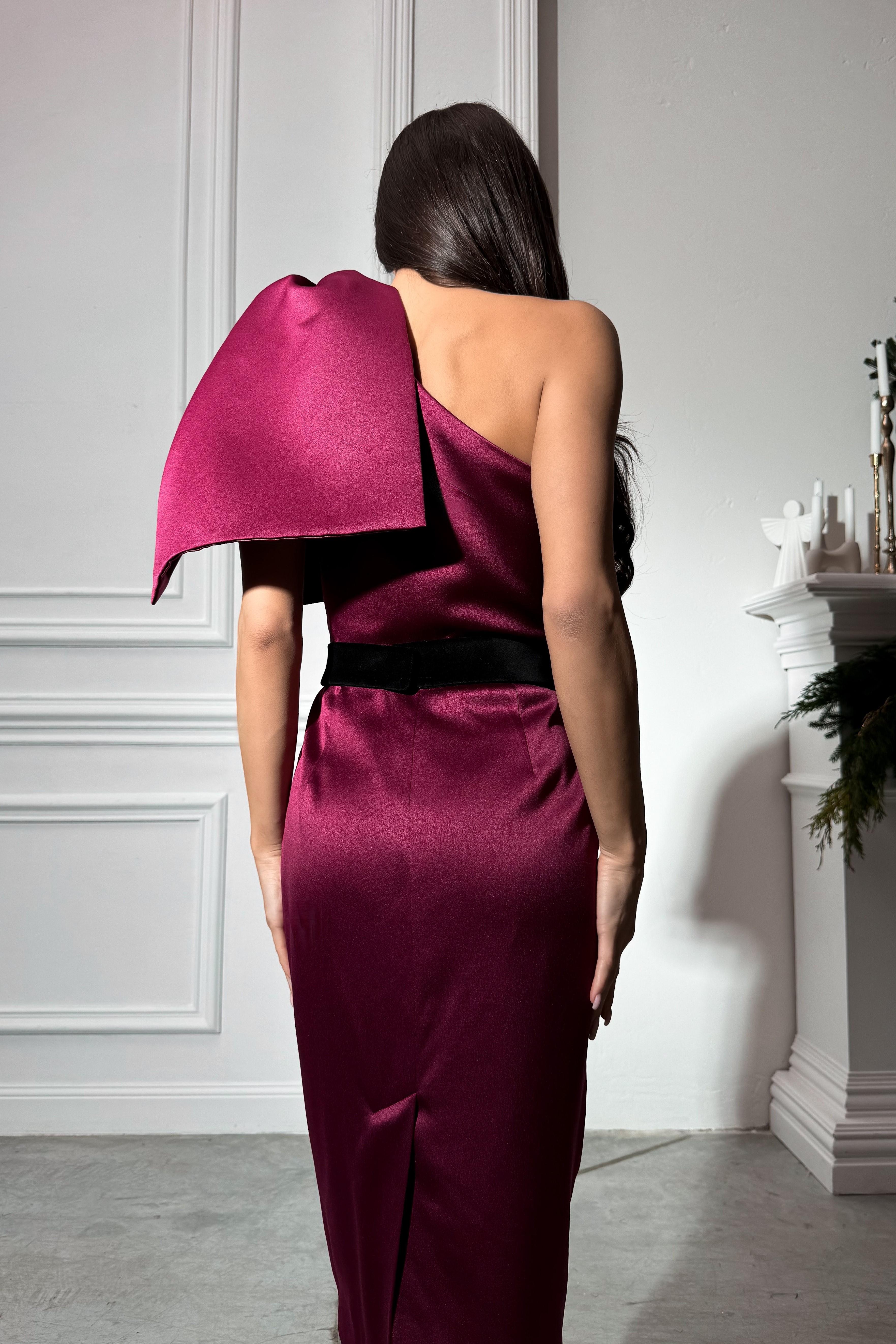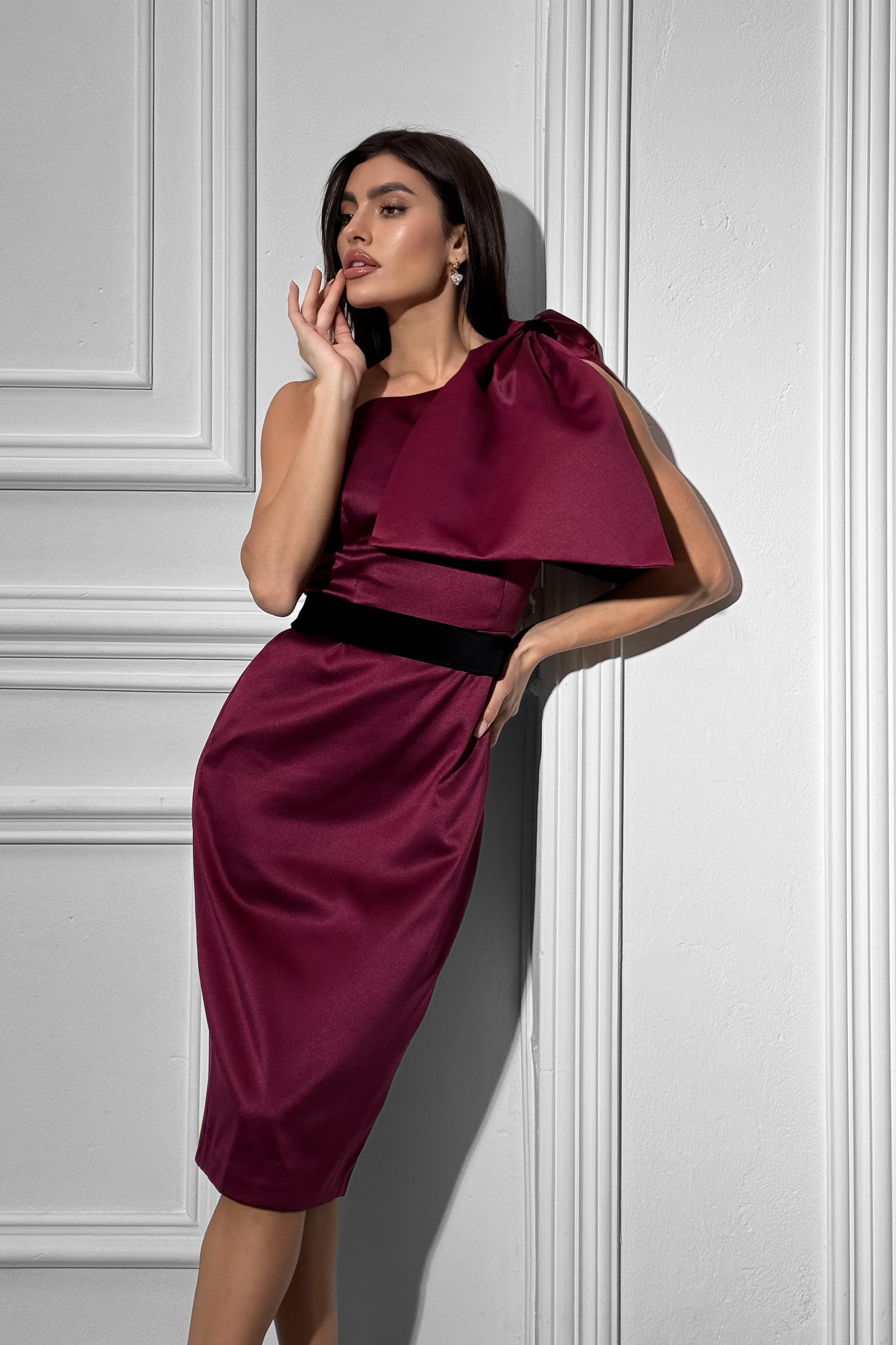 Силуэтное платье на одно плечо, с бантом и бархатным поясом, Sarah Berlin
