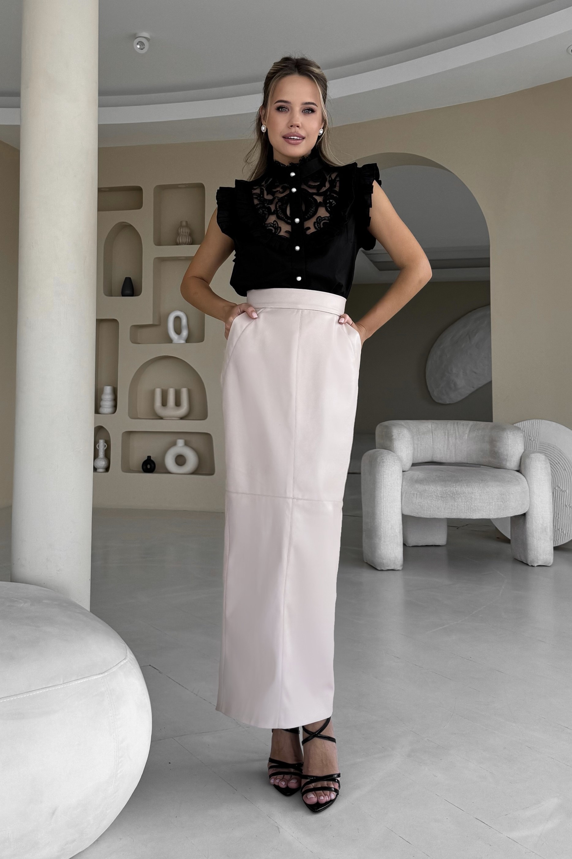 Юбка длинная из эко кожи, с карманами, Sarah Berlin
