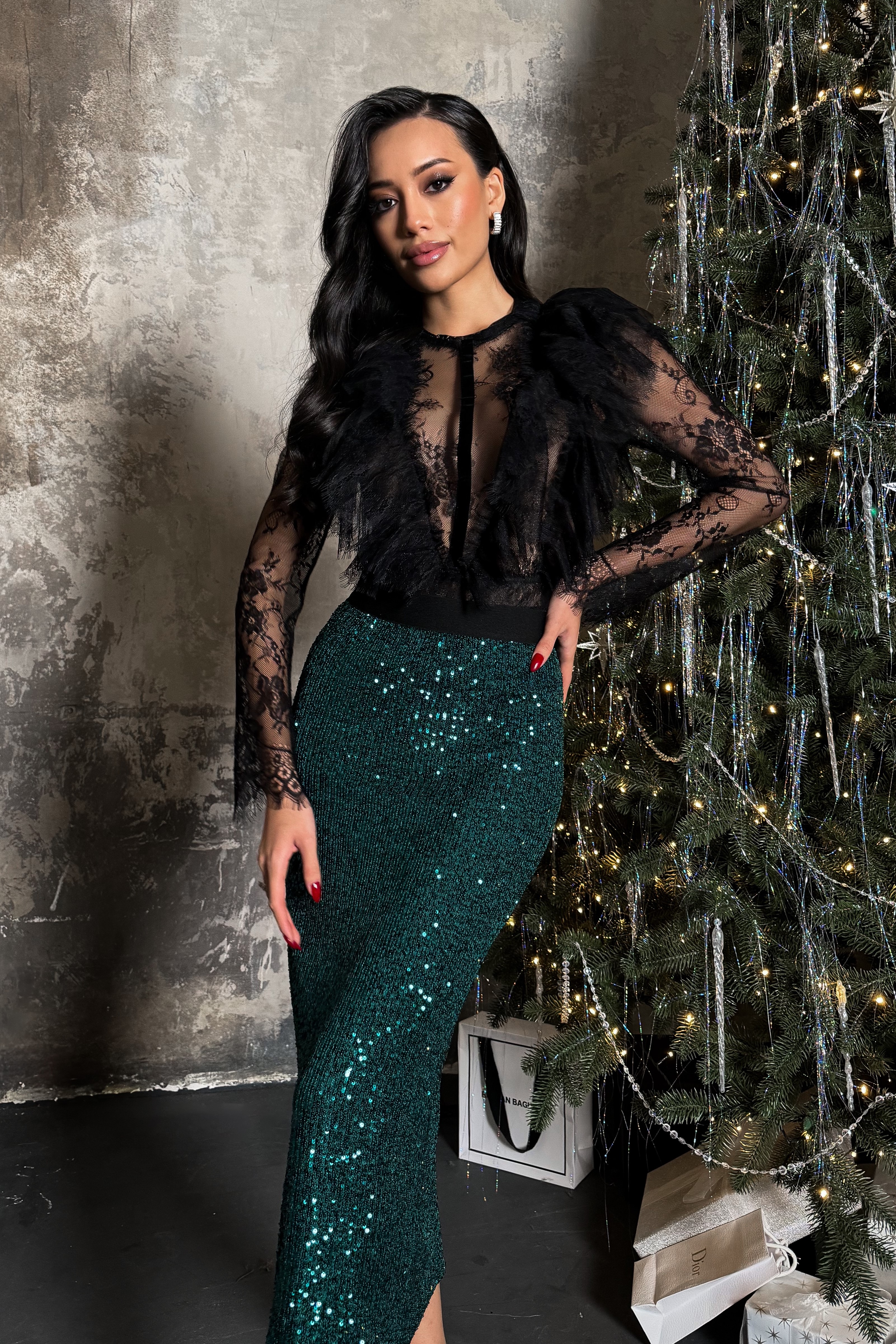 Юбка карандаш из пайеток с поясом на резинке, Sarah Berlin
