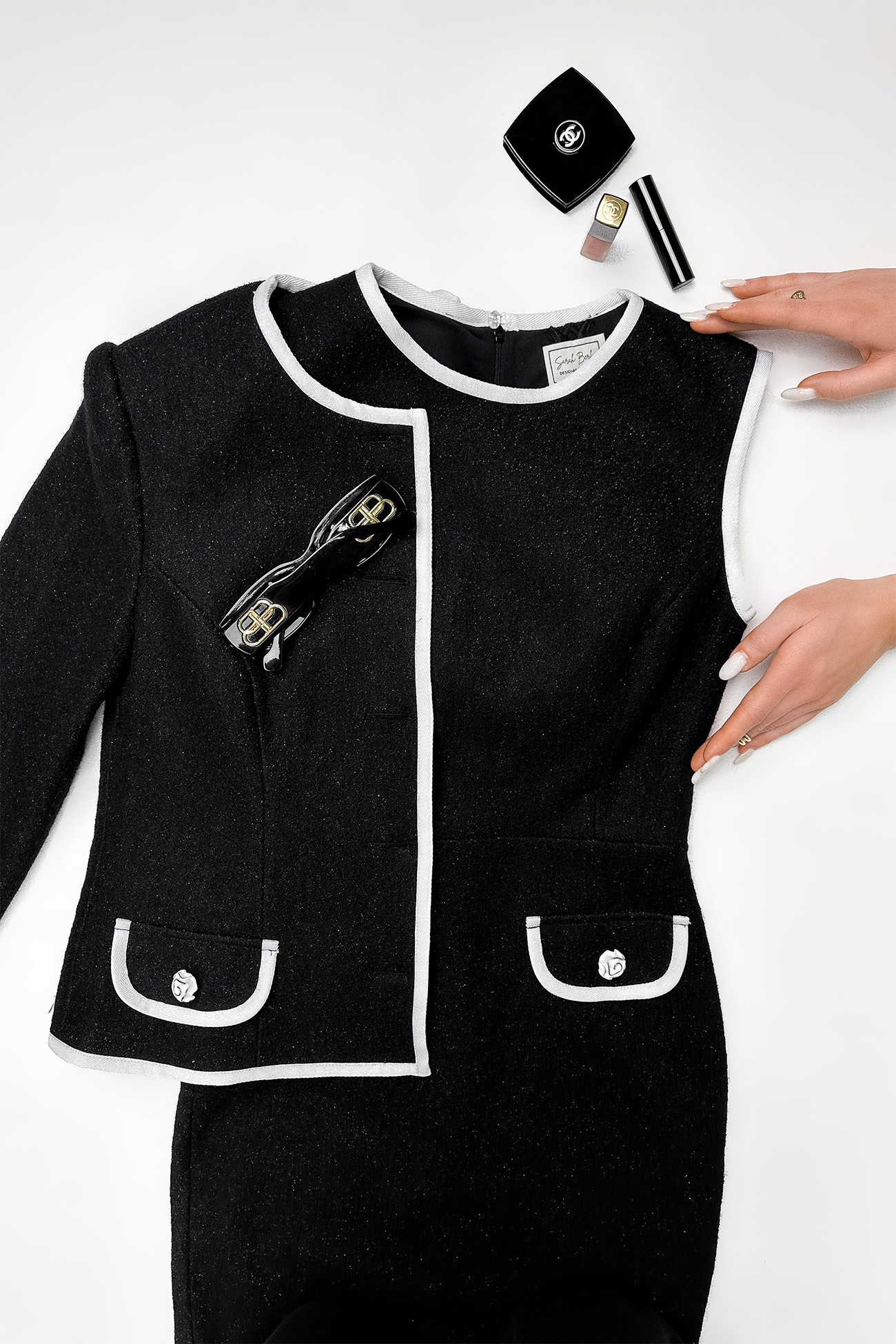 Трикотажний піджак з клапанами, з білим оздобленням, з дизайнерськими гудзиками