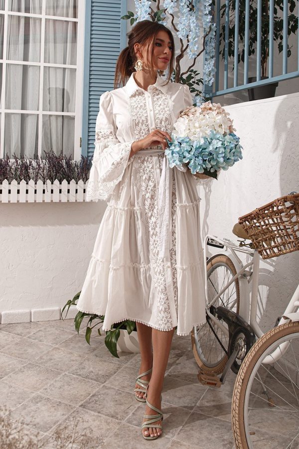 Бавовняна сукня з вишивкою Білі Лілії, з дизайнерською бахромою