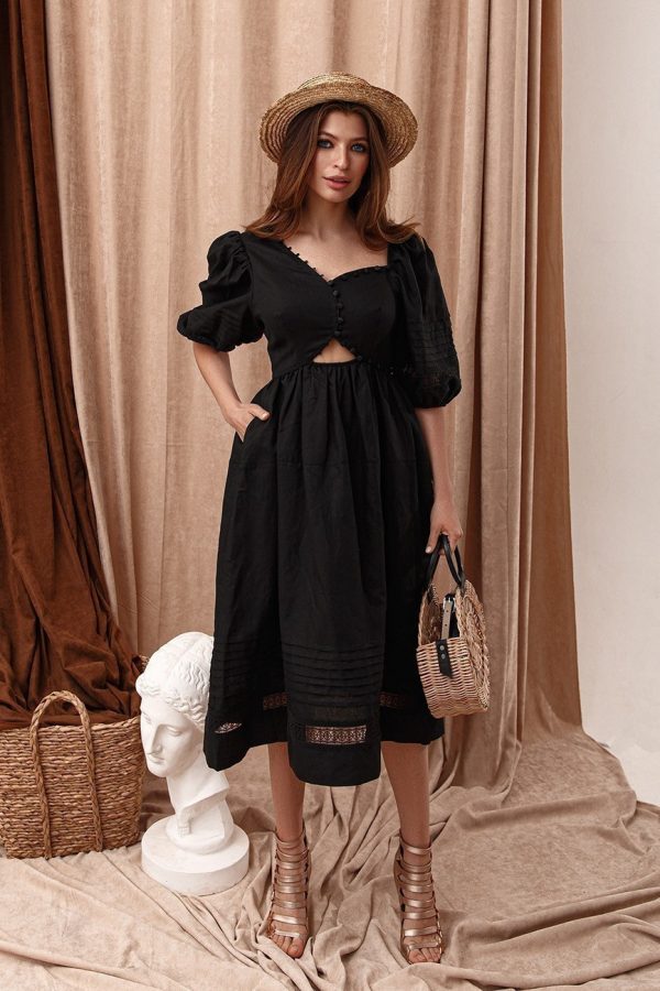Льняна сукня вільного силуету з суцільнокроєними рукавами кімоно