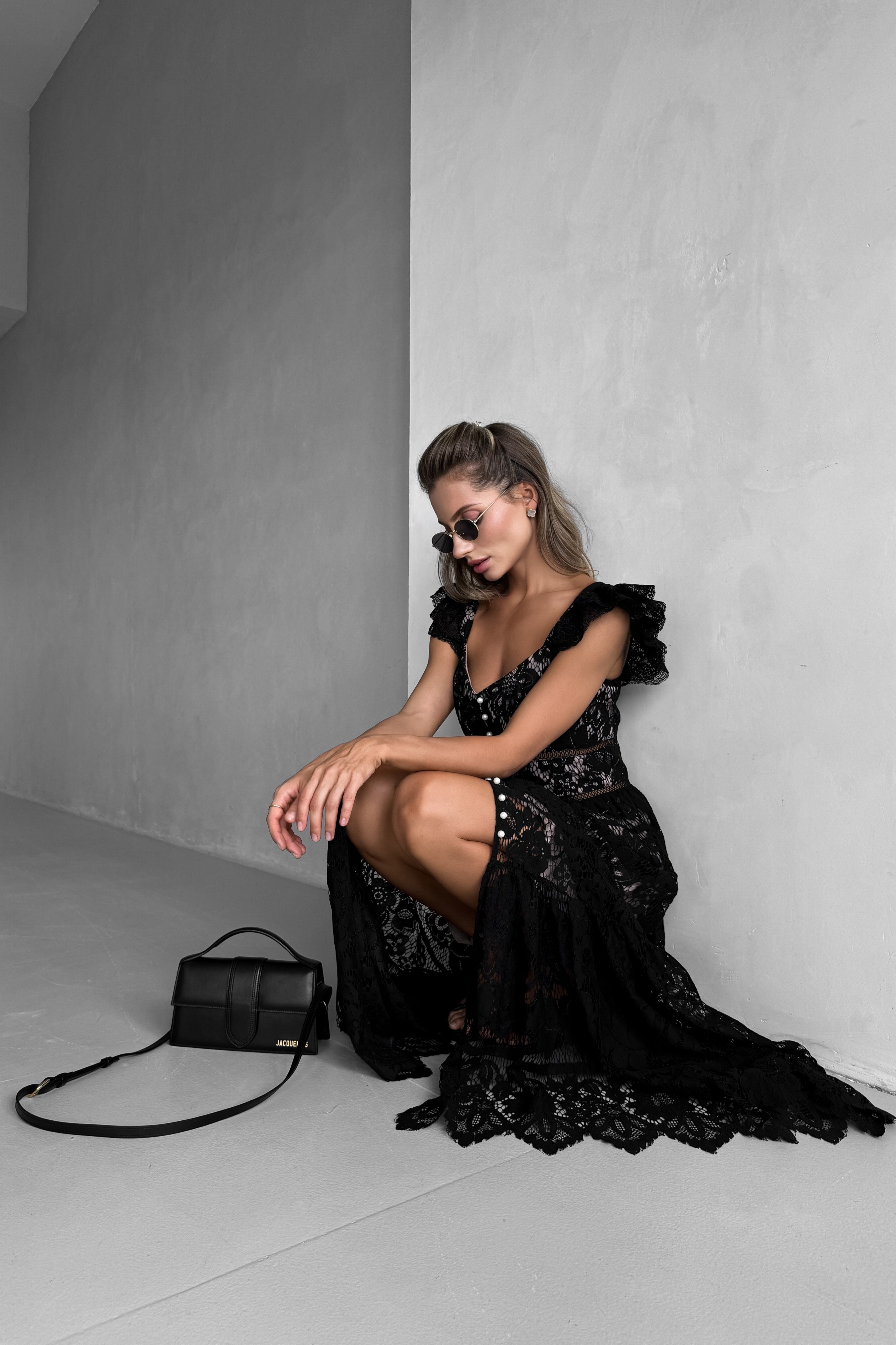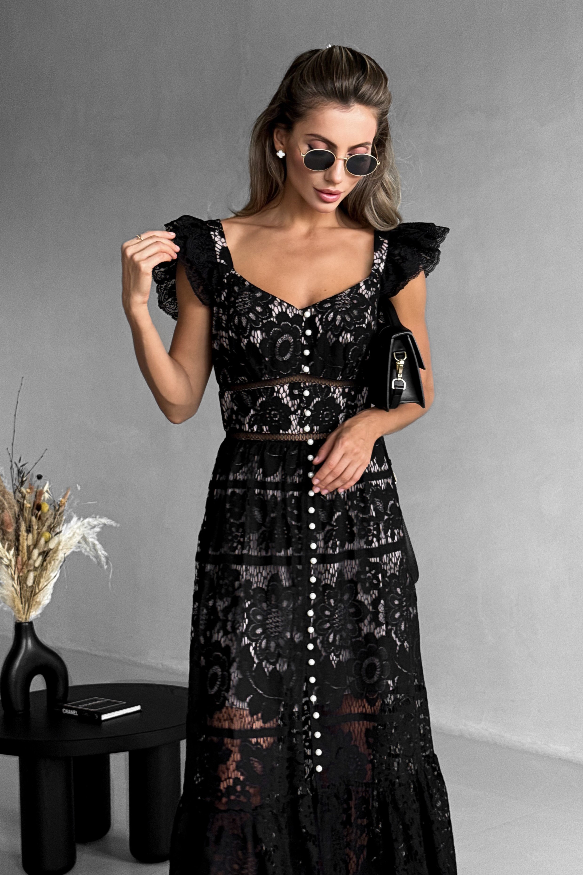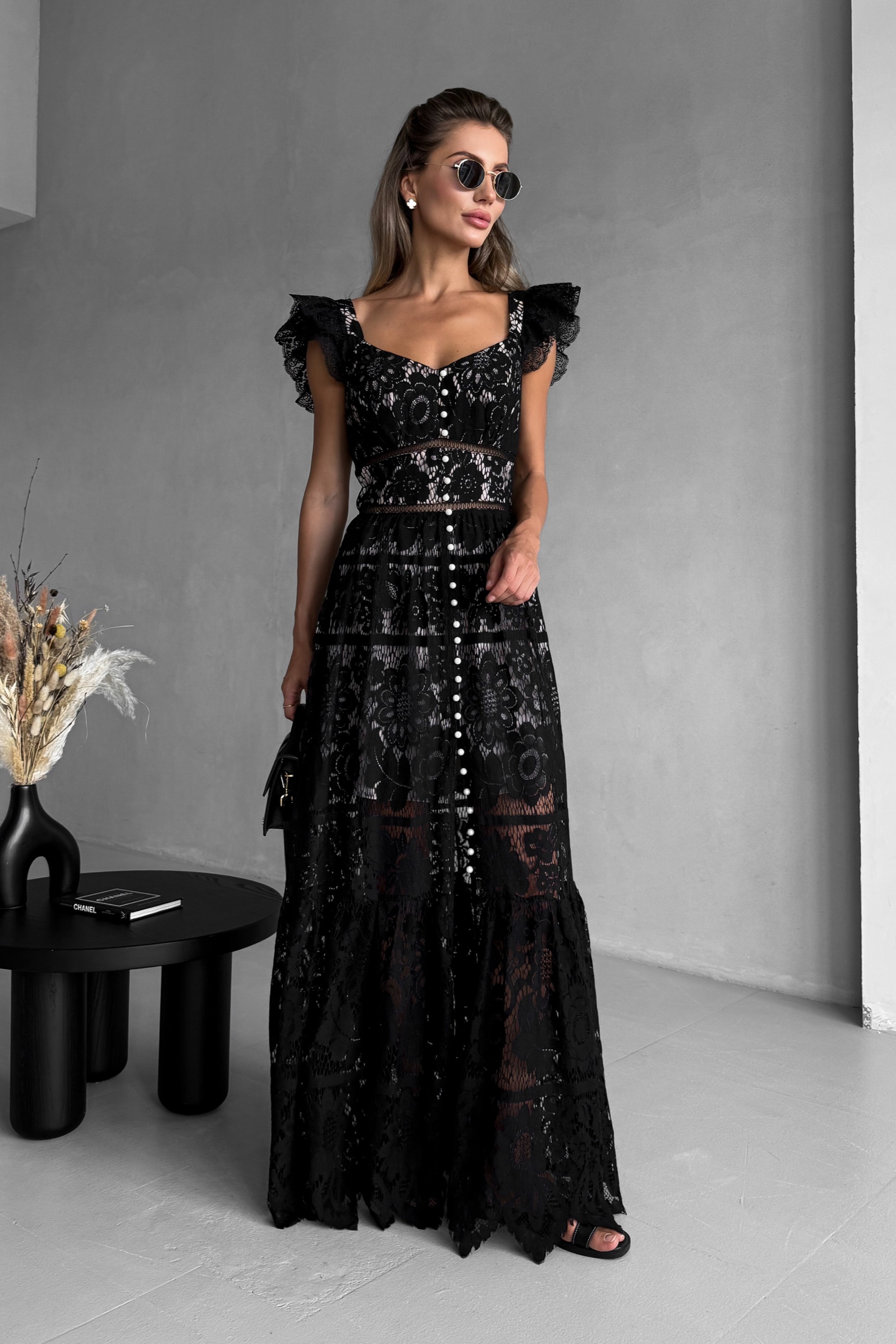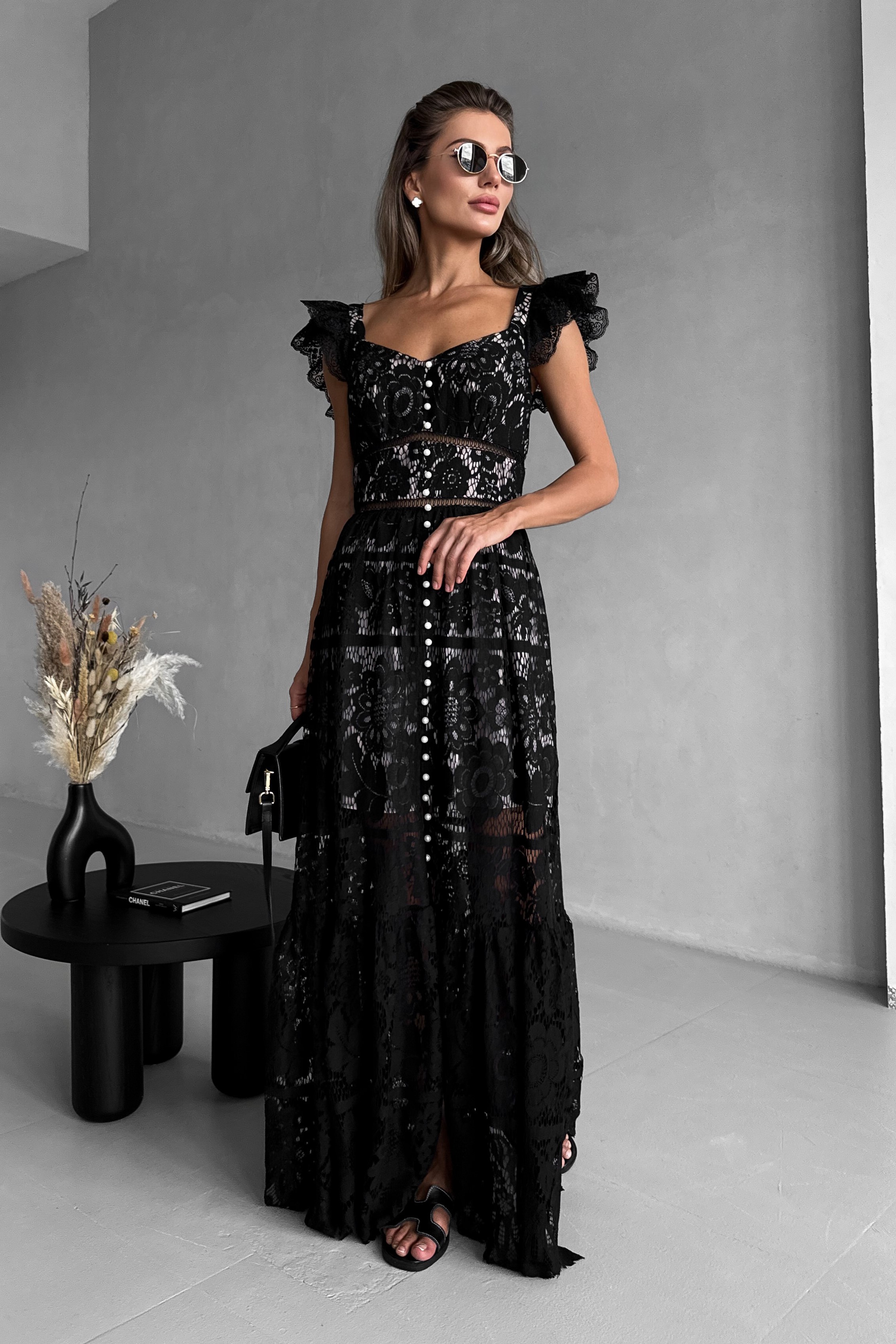 Мереживний сарафан у підлогу з крильцями, з перлами, Sarah Berlin