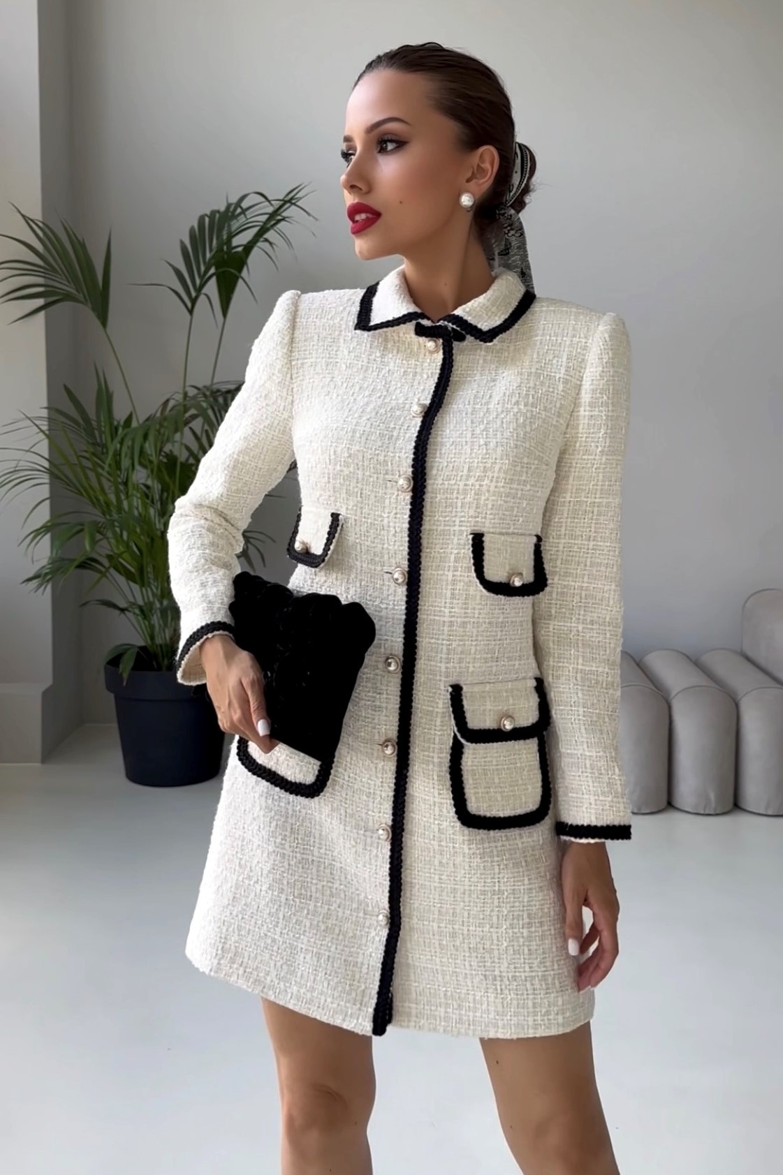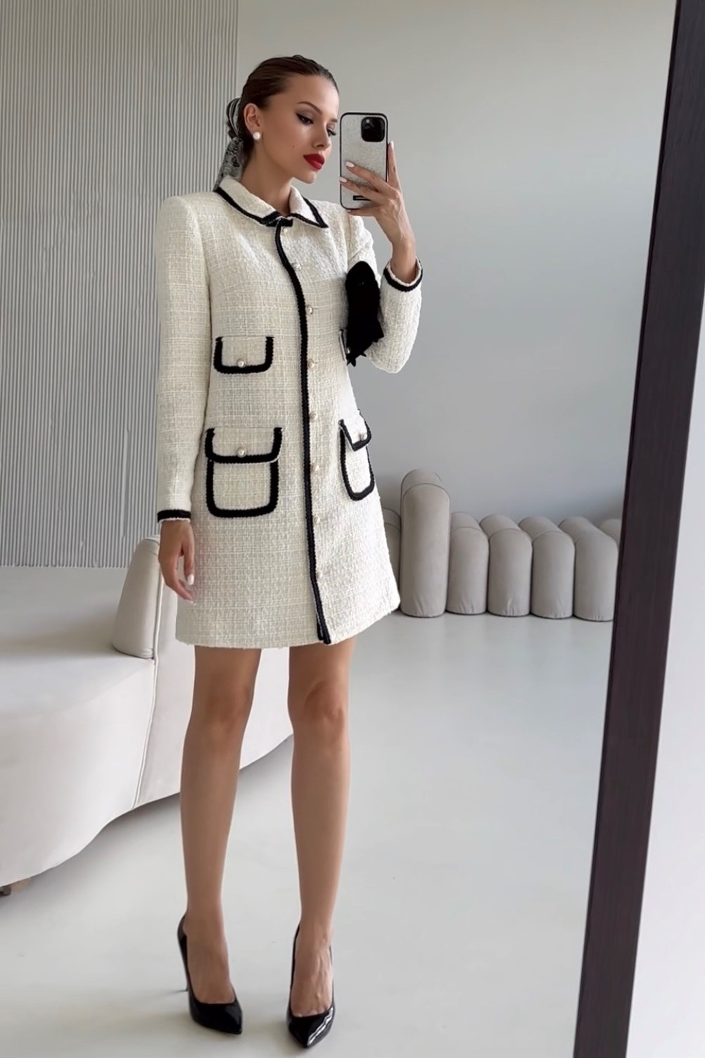 Твідова сукня кардиган вище коліна, з накладними кишенями, із застібкою спереду