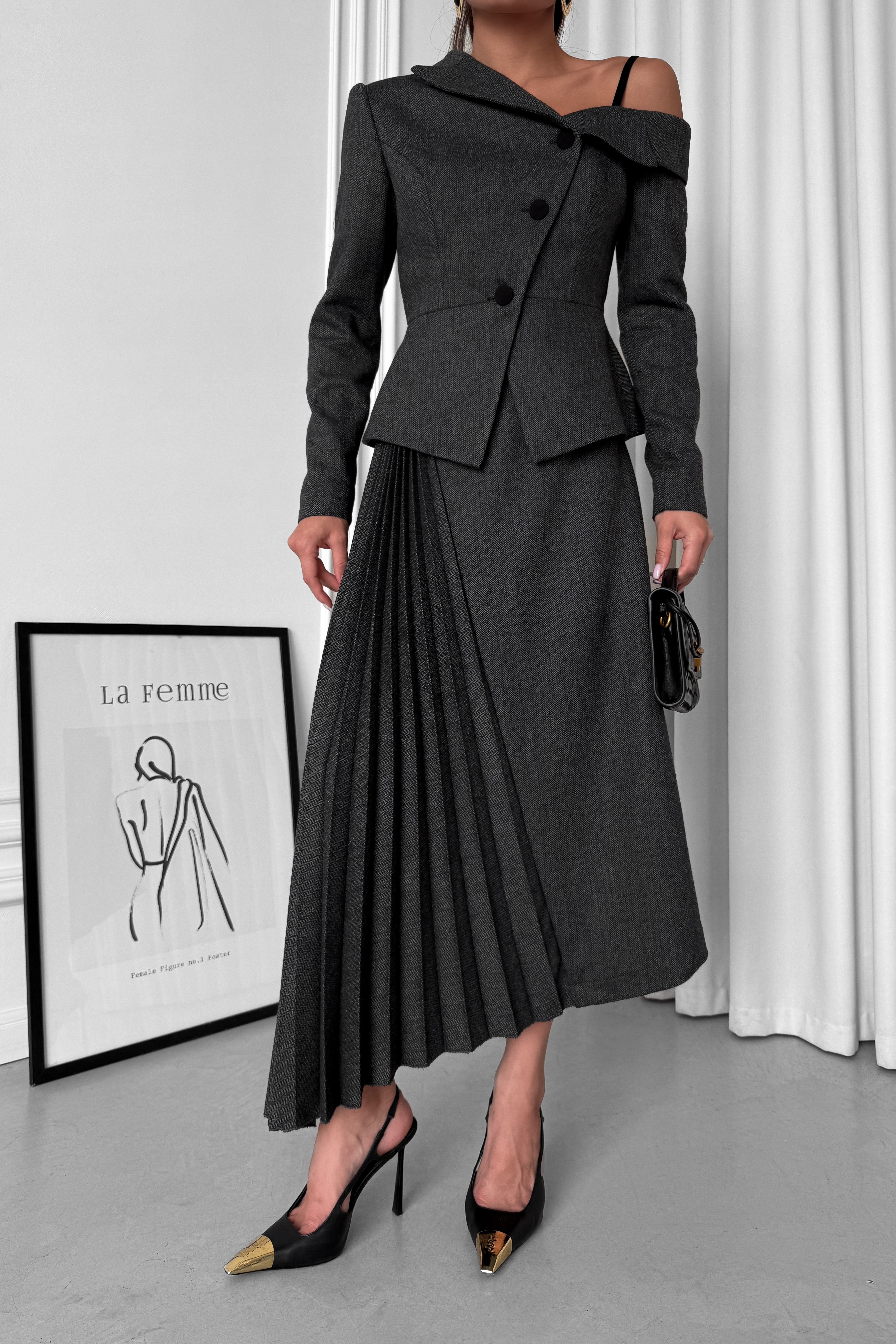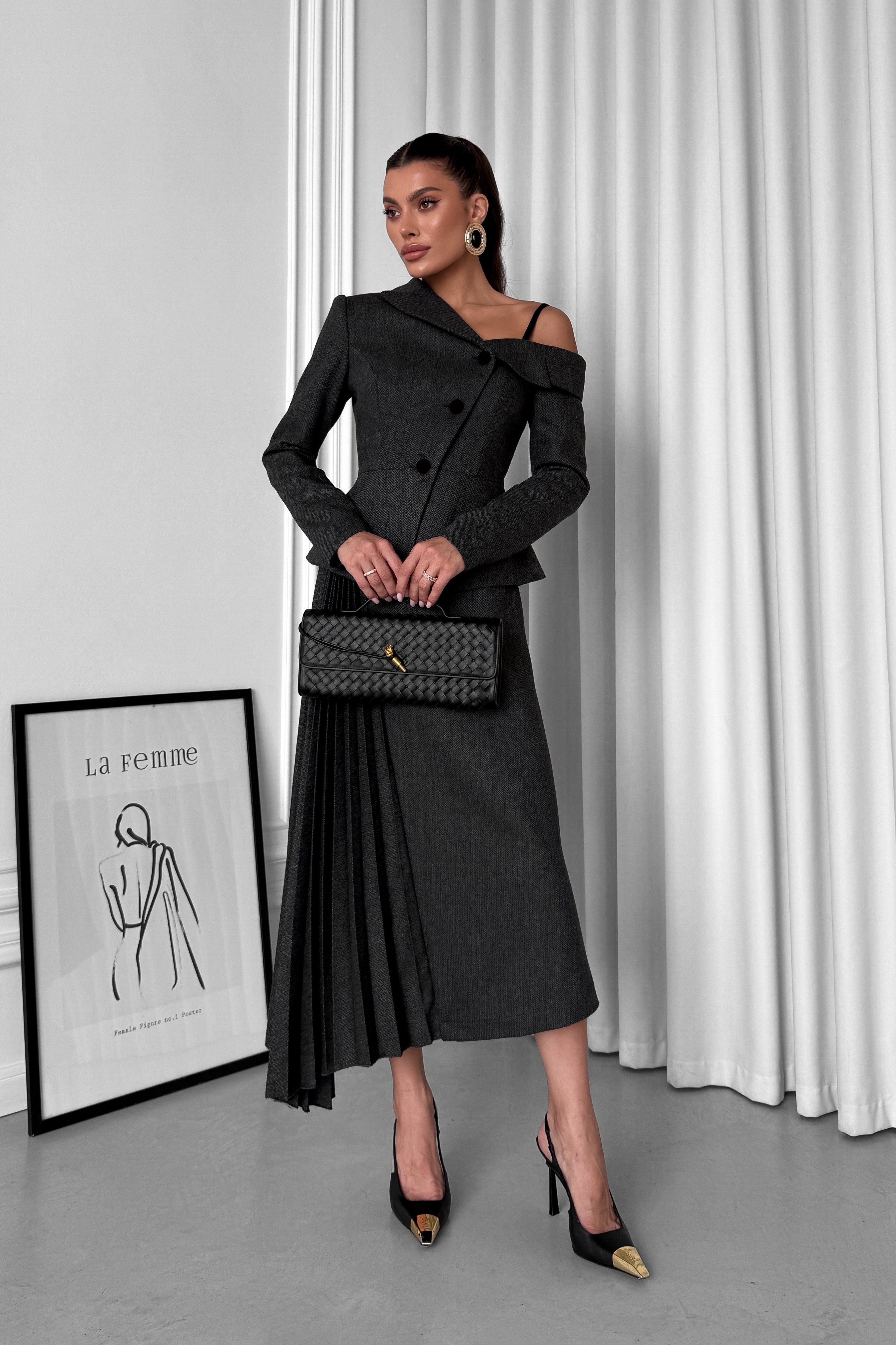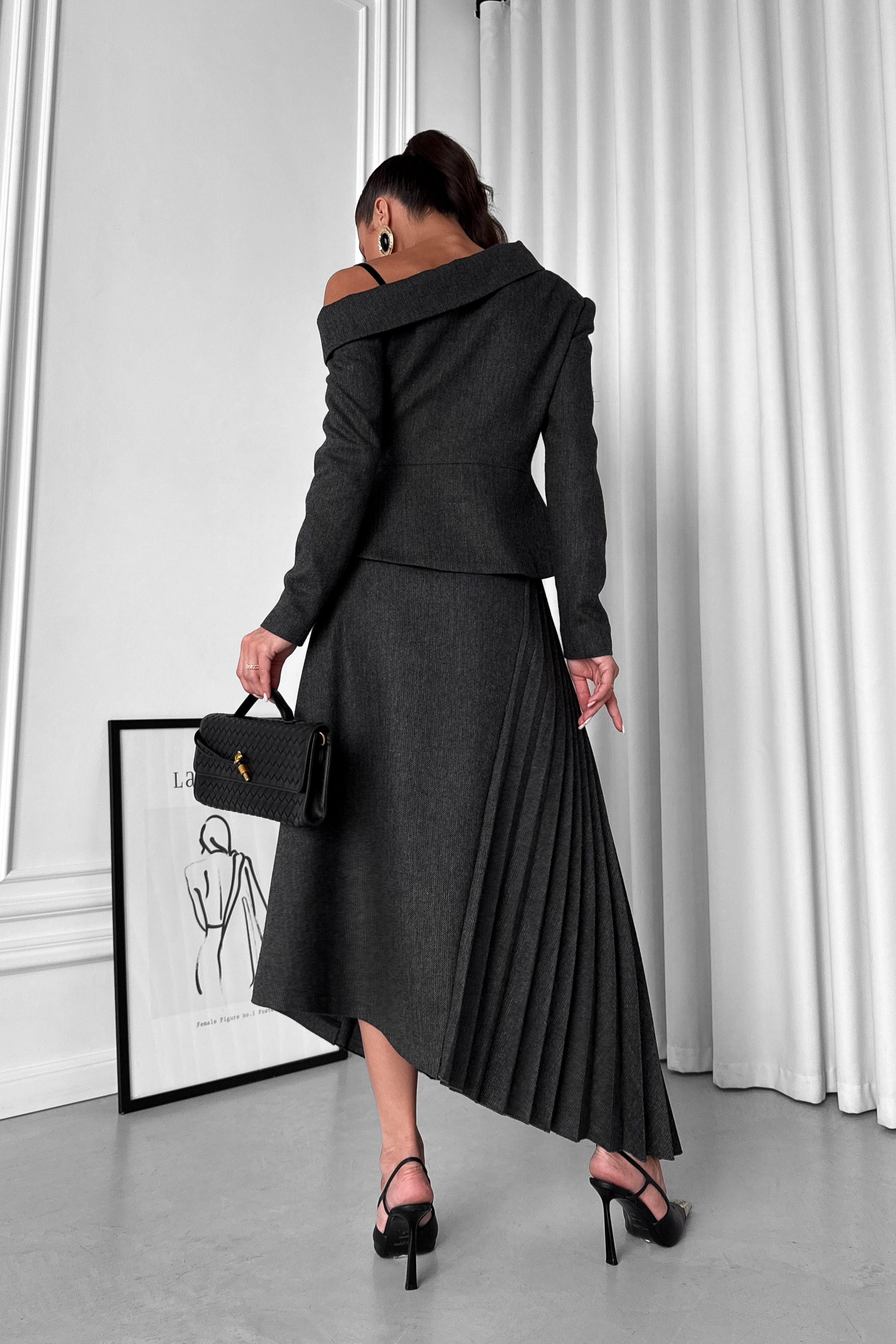 - Спідниця трапеція, з асиметричним кроєм, з плісованою вставкою