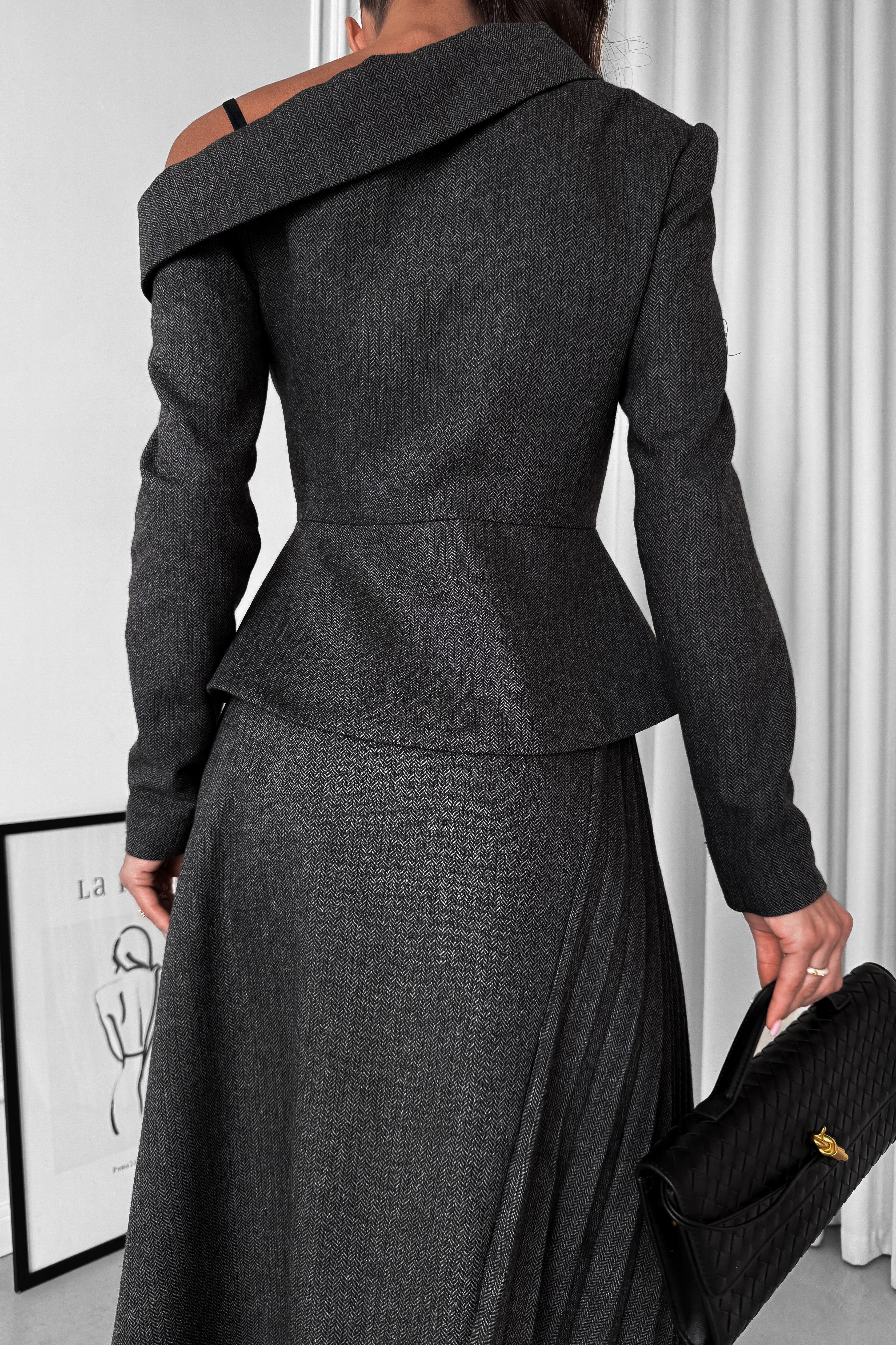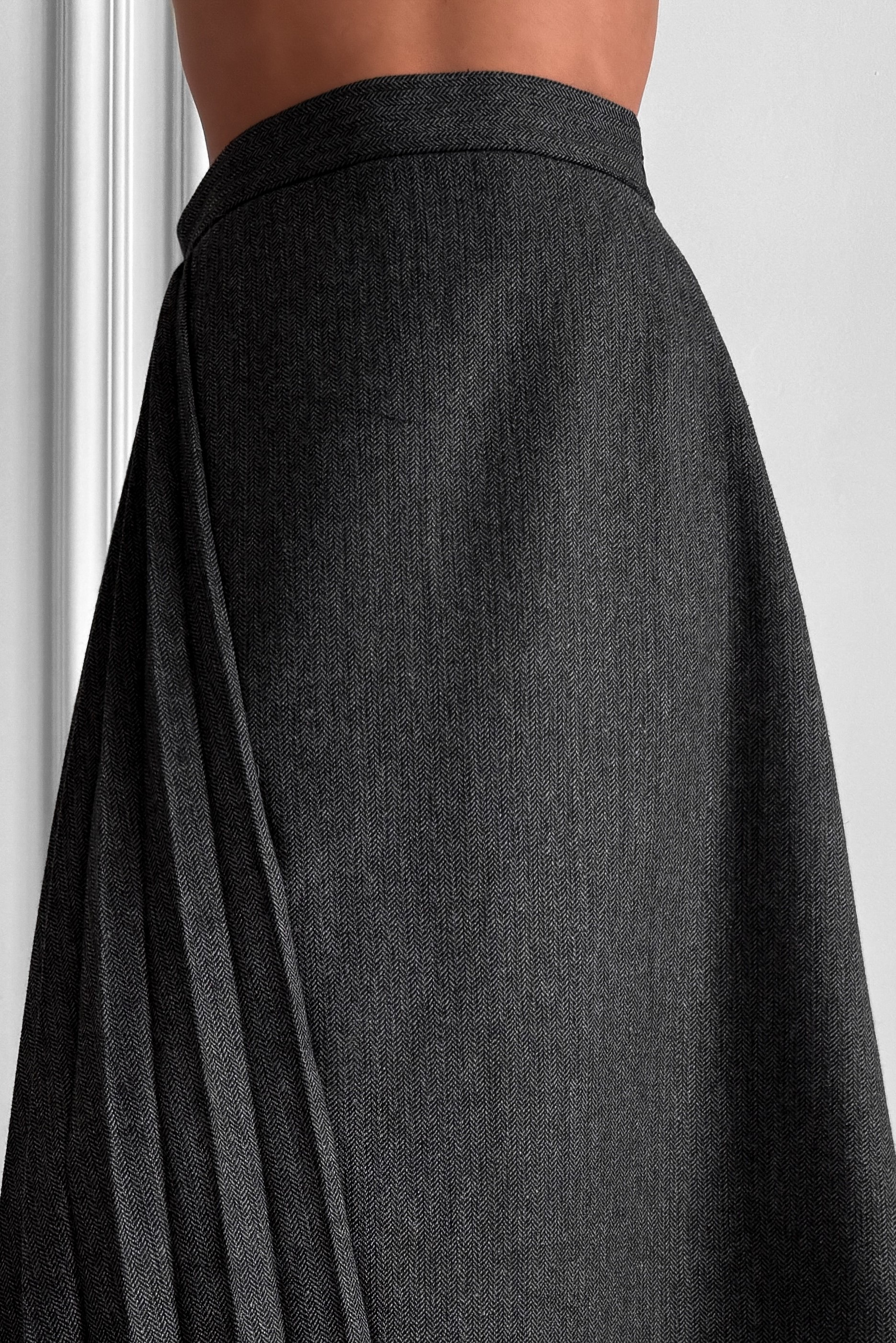 Твідова асиметрична спідниця трапеція ялинка міді з плісуванням