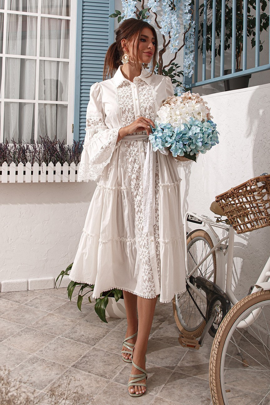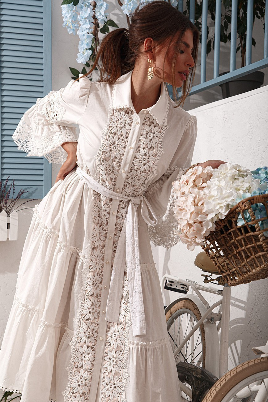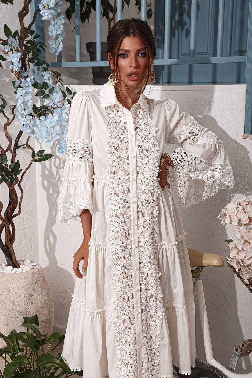 Ніжна бавовняна сукня сорочка зі вставками з мережива з пишною спідницею та рукавами.