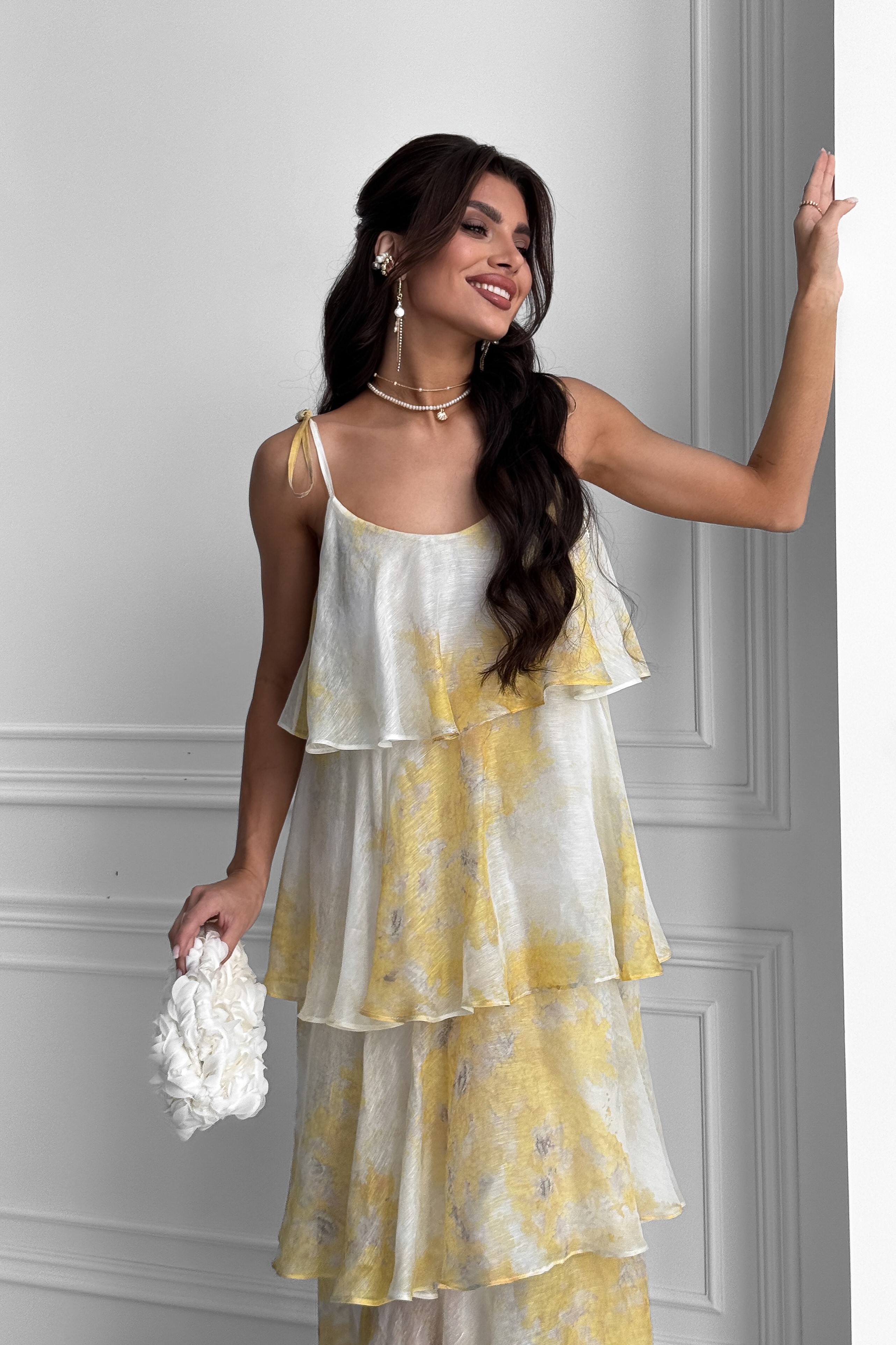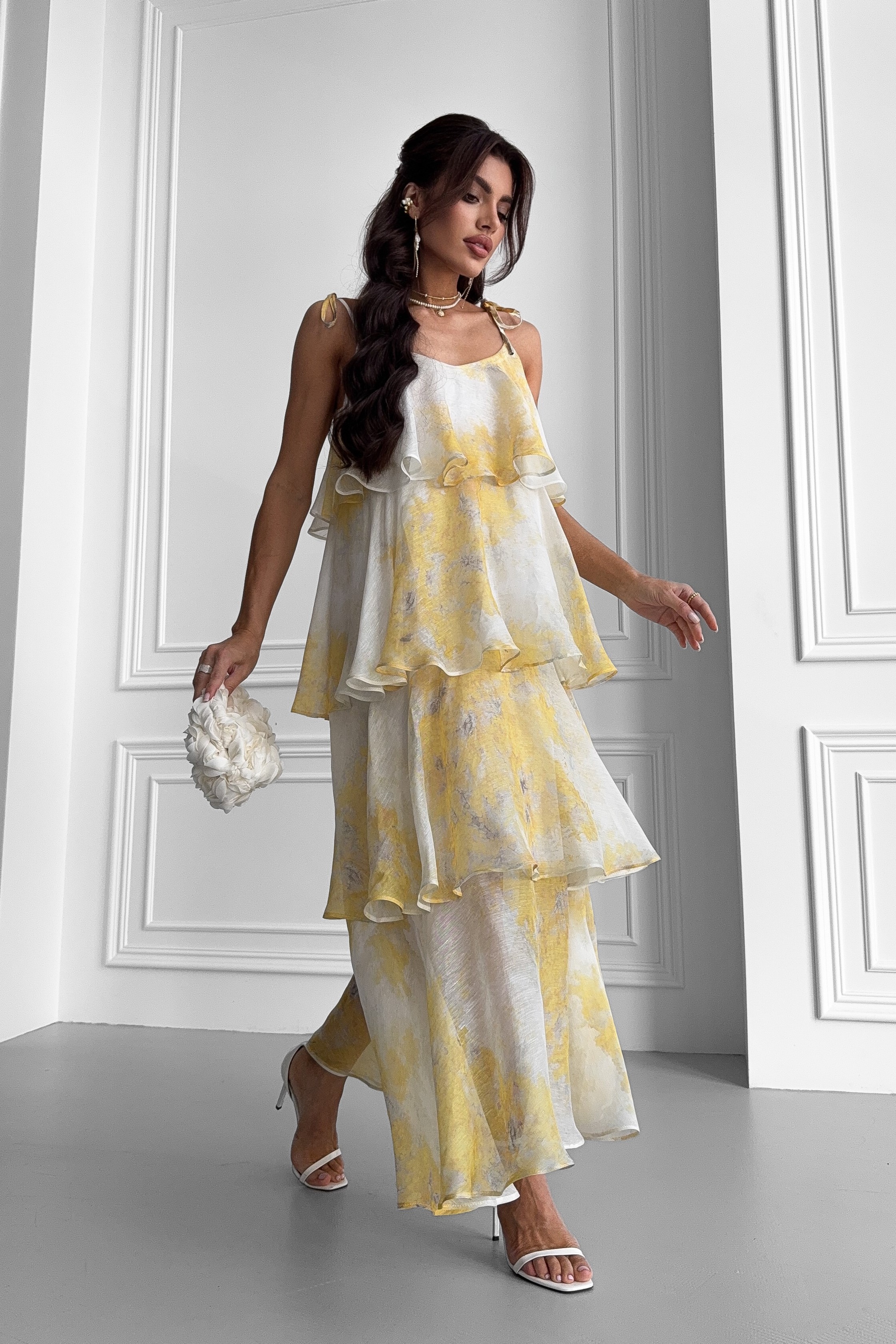 Довга сукня Мімоза ярусами з італійської шовкової органзи