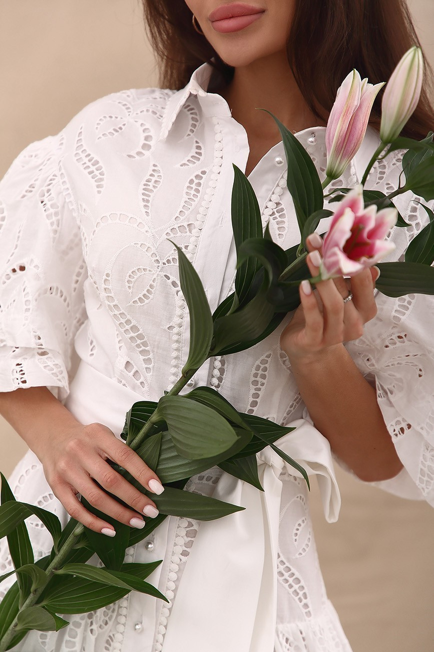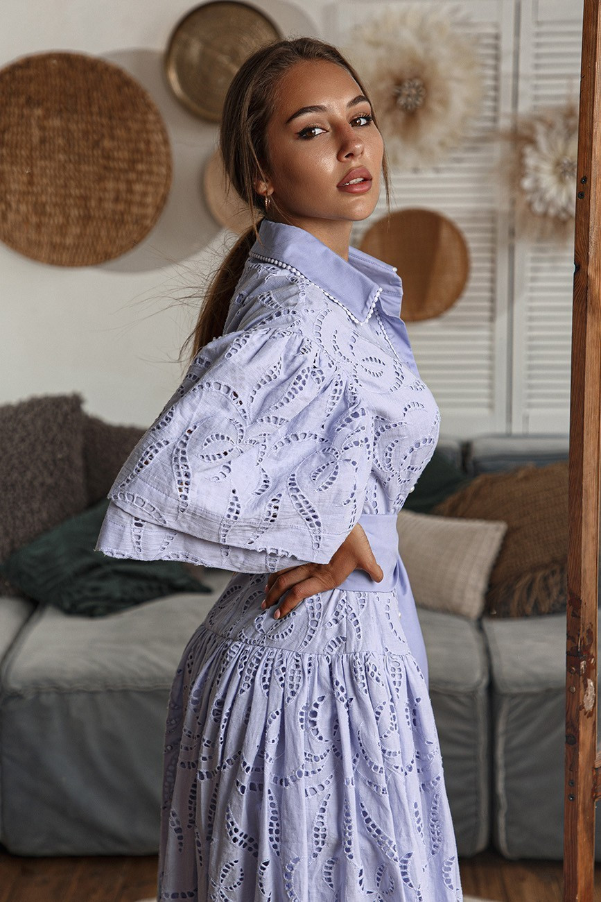 Розкішна сукня сорочка в підлогу із застібкою на гудзики, зі спущеними плечима та пишними рукавами, з широким поясом, чудово підкреслює фігуру та привертає увагу. Неймовірно зручна і красива сукня, призначена для яскравих подій у твоєму житті.