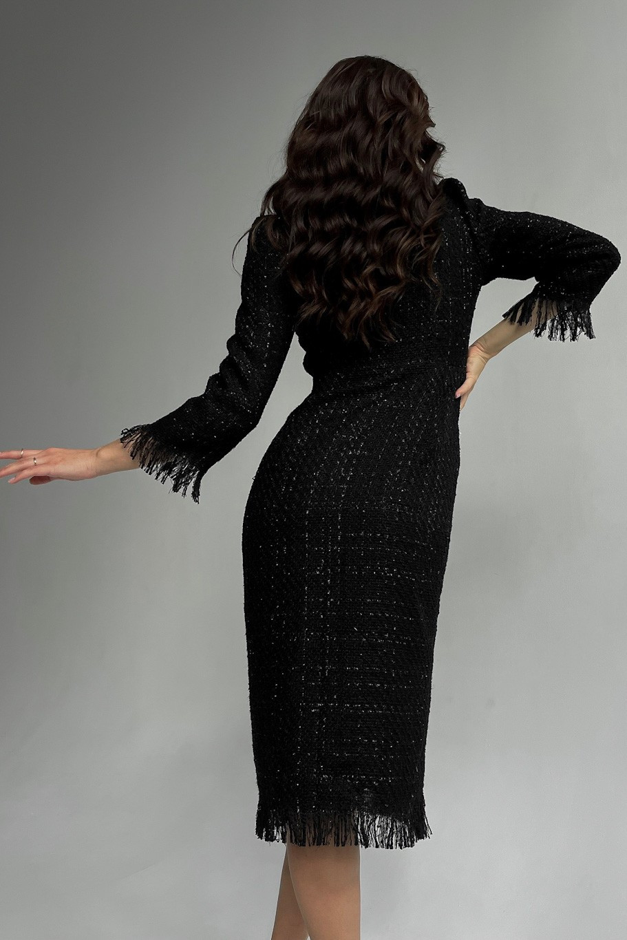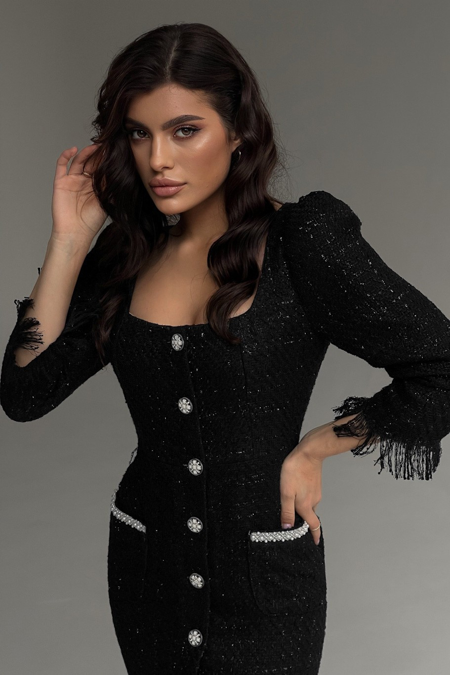 Твідова сукня міді, з дизайнерськими гудзиками, із застібкою спереду