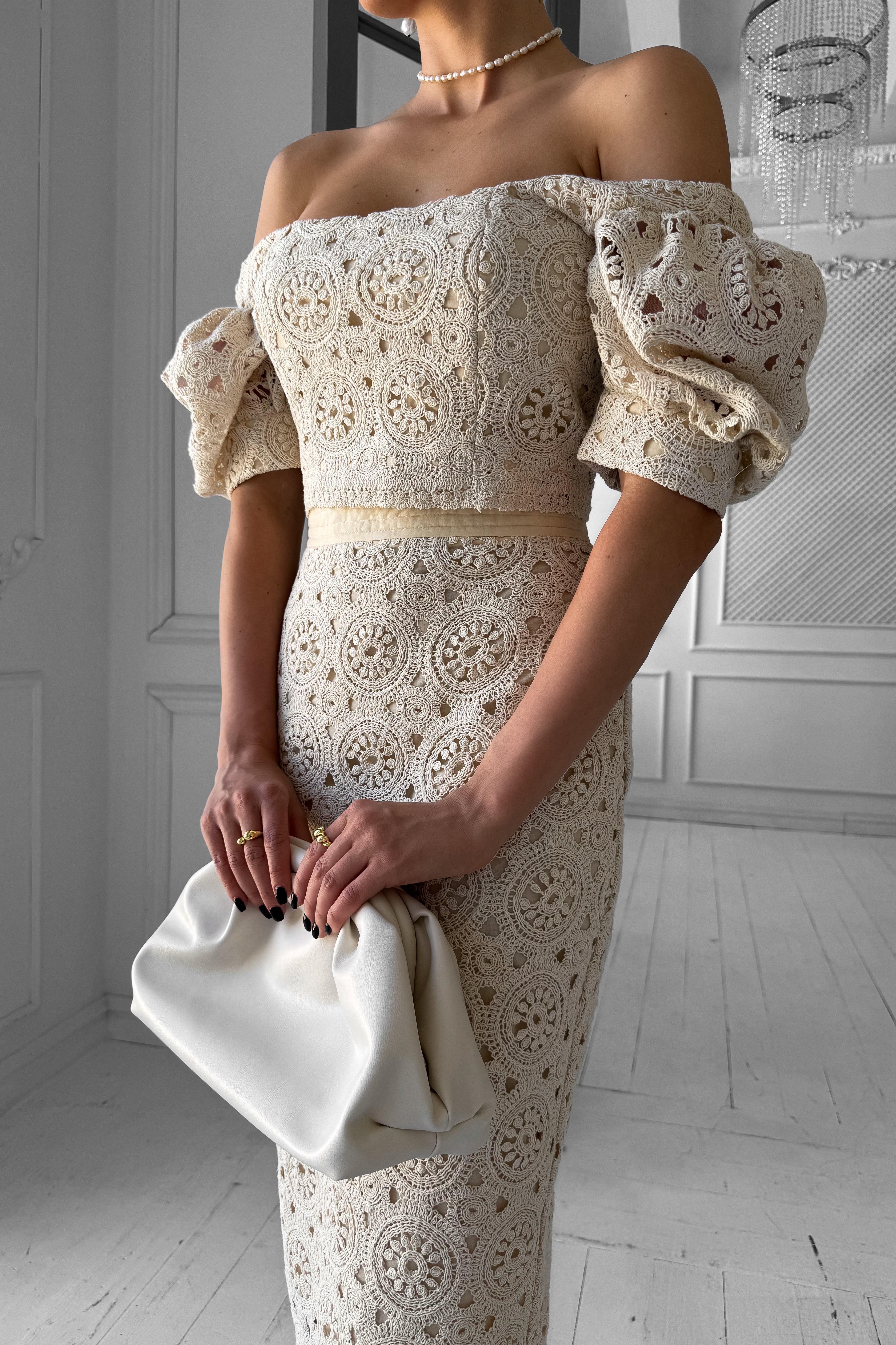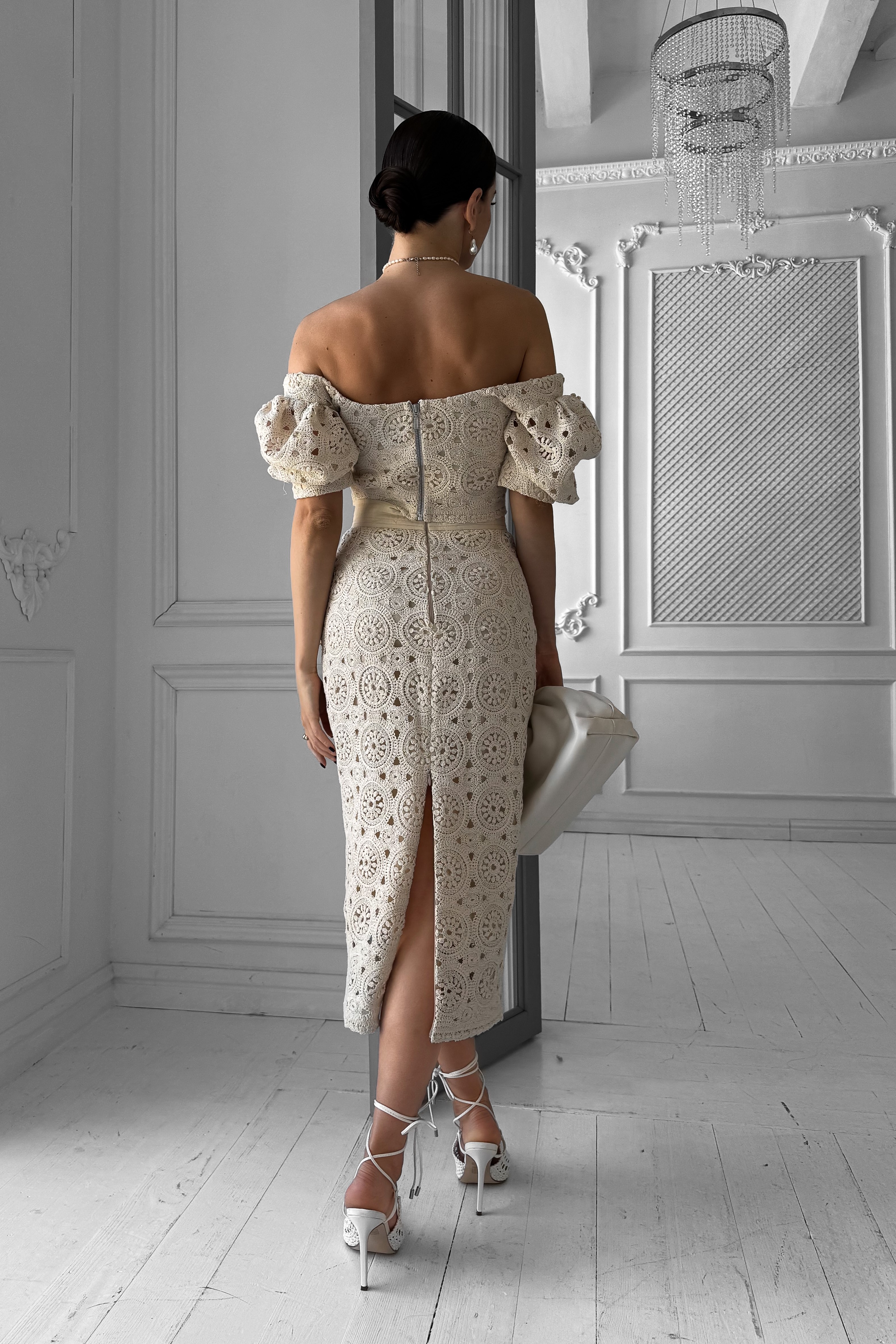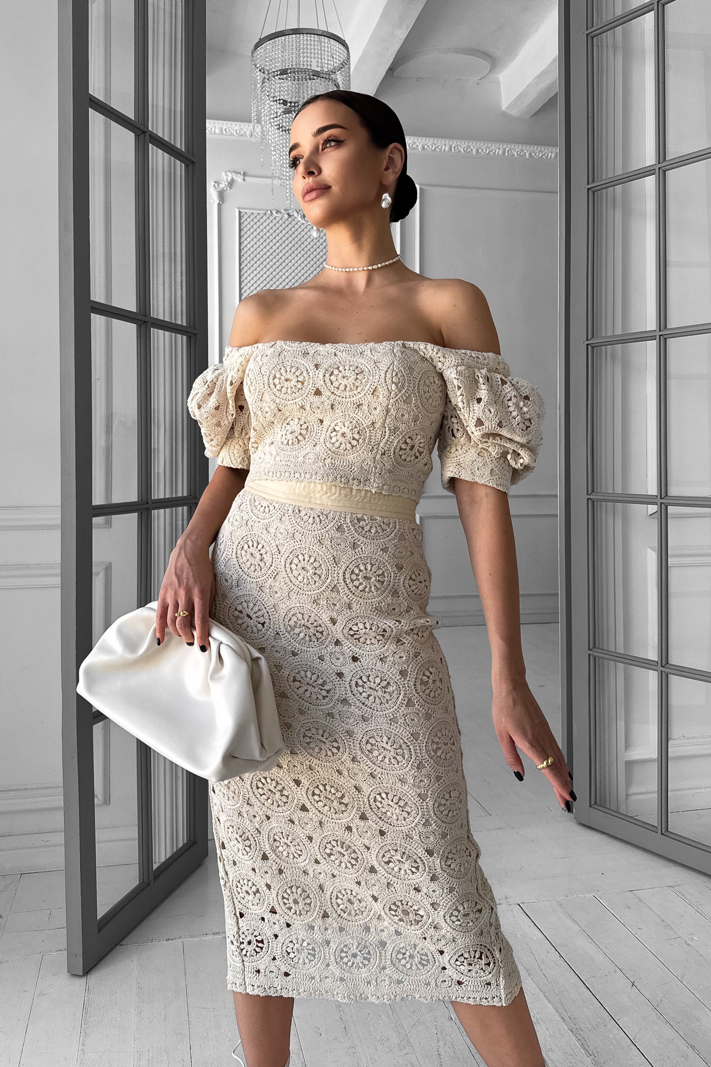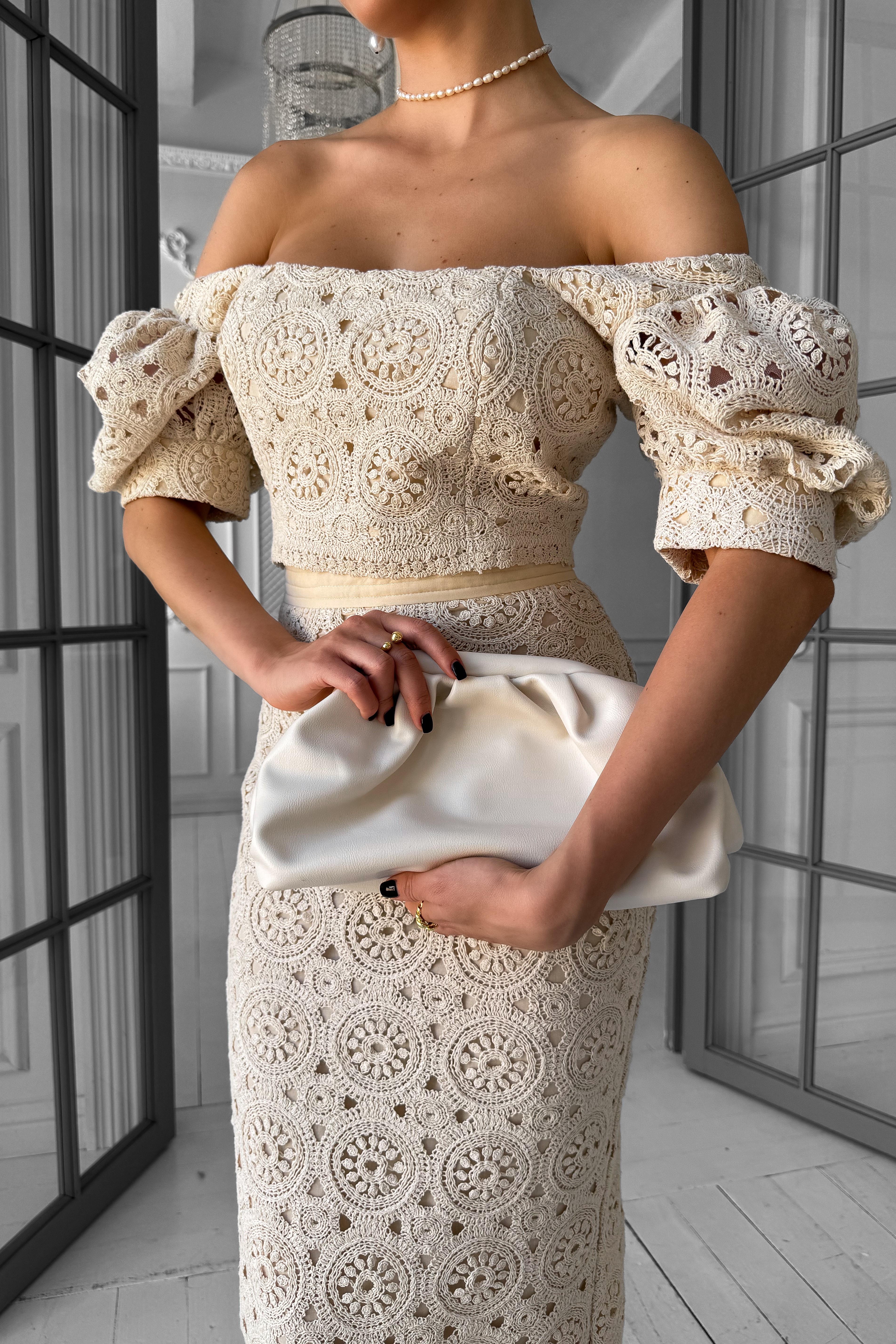 Костюм двійка з макраме: топ з рукавами ліхтарик і спідниця міді, Sarah Berlin